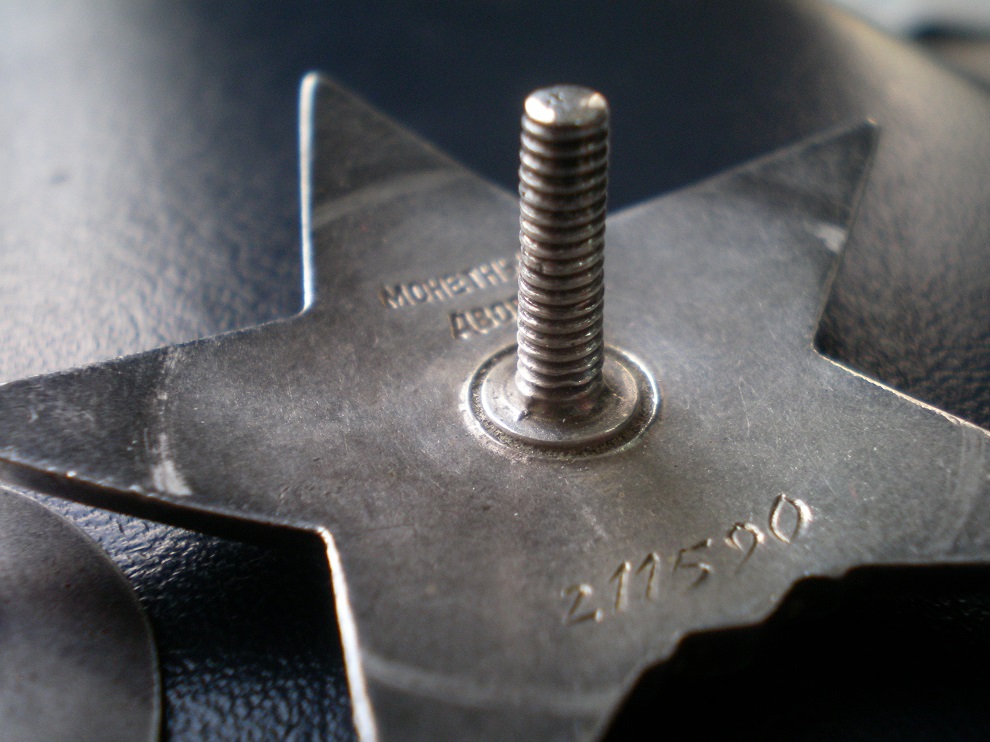 По РФ.Не пробивал.Эмаль родная,следы ношения,если сильно придираться можно найти чешуйку на кончике луча на 3 часа.Гайка серебро,винт длиннющий,я насчитал 18 витков.Любые фото по запросу.