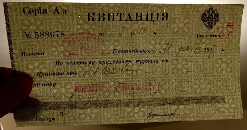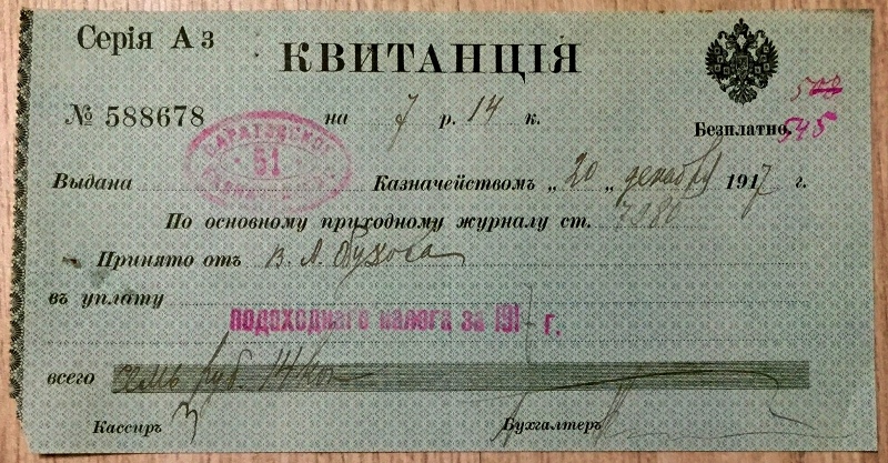Продается квитанция об уплате подоходного налога, 1917г.