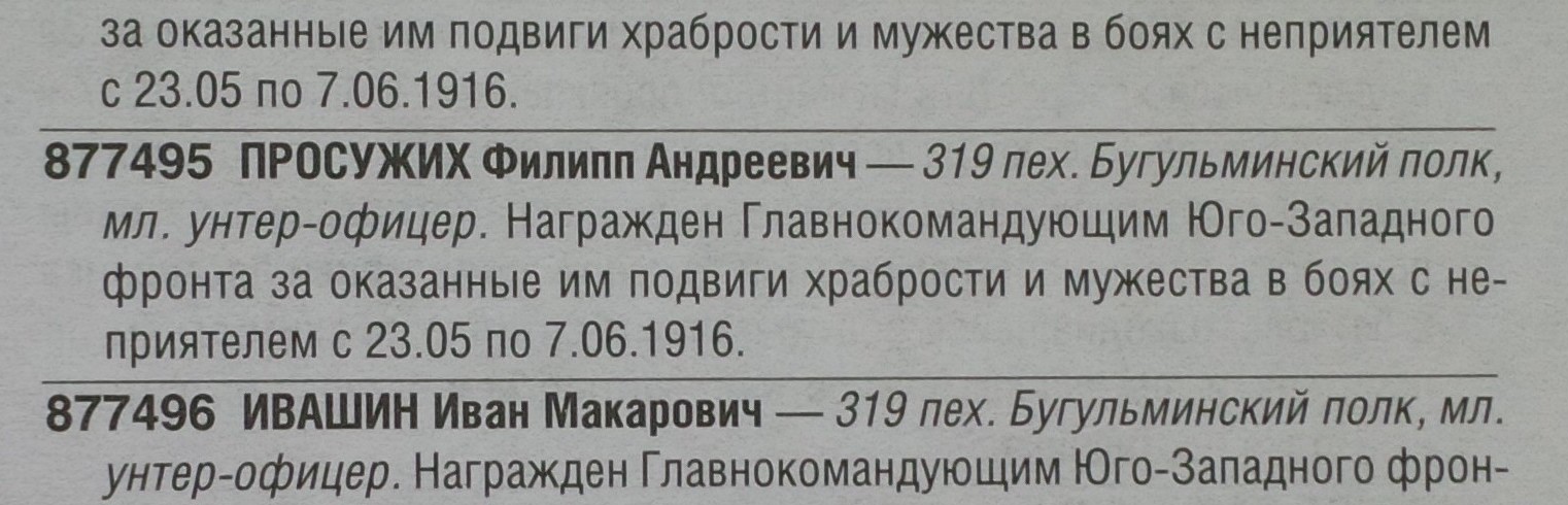 319 пехотный Бугульминский полк, младший унтер-офицер.