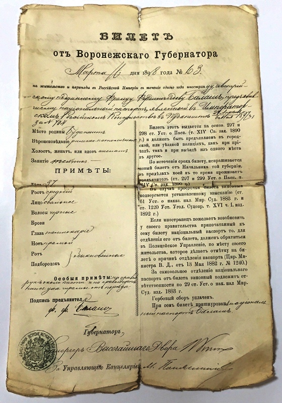 Просматривая мои лоты вы найдете документы и бумаги практически на любые темы! Это уголовный розыск императорской России, документы полиции и жандармерии, огромнейший выбор счетов-реклам различных магазинов, лавок, товариществ, документы на тему банков, нефтяной промышленности, строительства, документы различных фирм и учреждений, бумаги по теме образования, векселя, ценные бумаги контор Печенкина и Агафонова, гербовые бумаги, паспорта на иностранцев практически всех городов царской России, и многое другое! Есть гибкая система скидок для оптовых и постоянных покупателей. Возможны различные варианты с комиссией (для тех кого я знаю или у кого есть серьезные поручители) Вобщем пишите, отслеживайте, выбирайте!