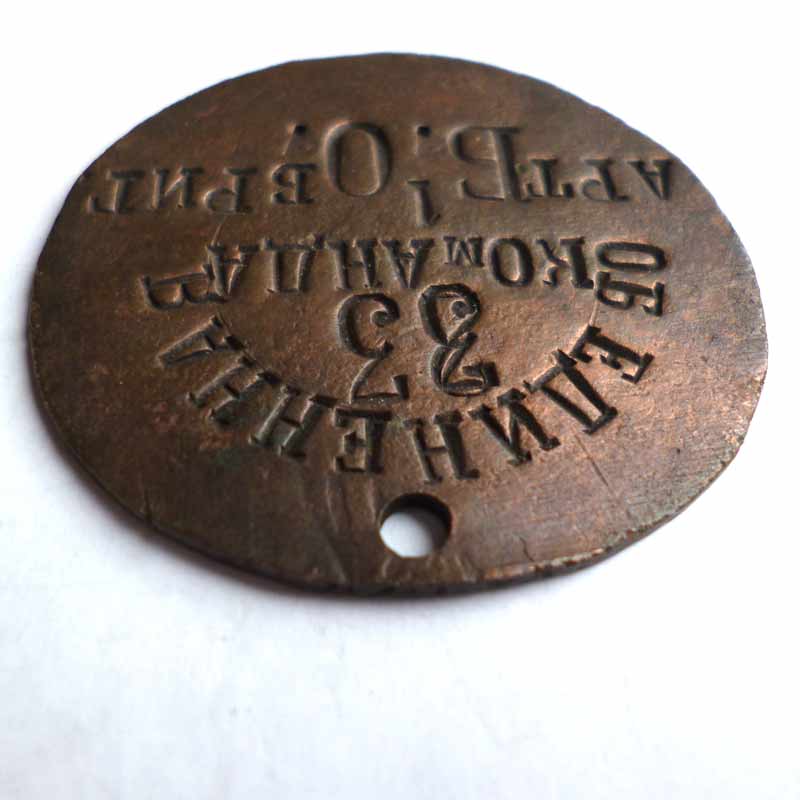 личный знак нижнего чина объединенной команды 1 -ой артиллерийской бригады "Береговой обороны" Балтийского моря.