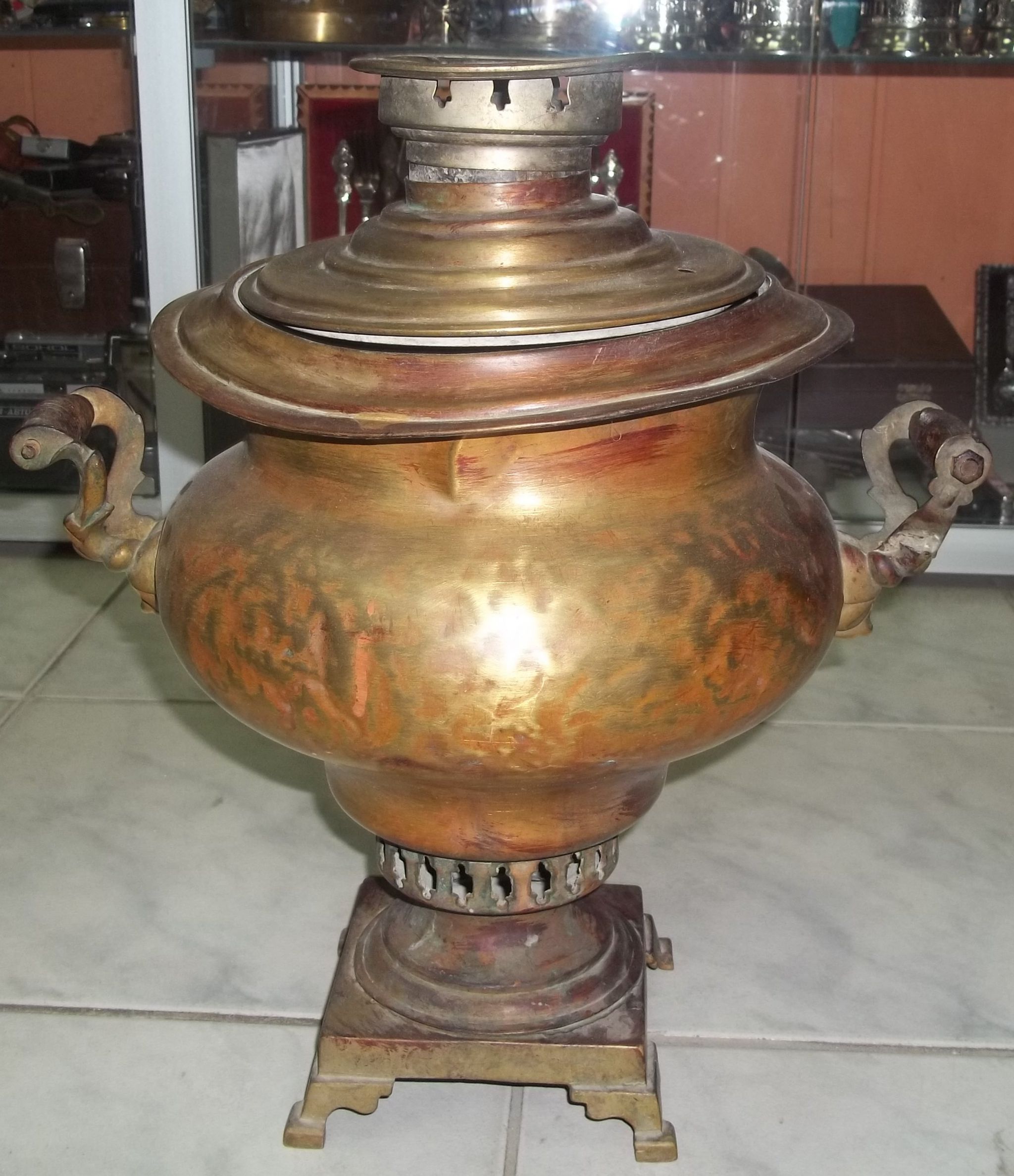 Самовар в форме репы. Латунь. Высота 43 см. Диаметр 26см. Состояние видно на фото. Доставка транспортной компанией ПЭК или Деловые Линии. Цена 9 т.р.