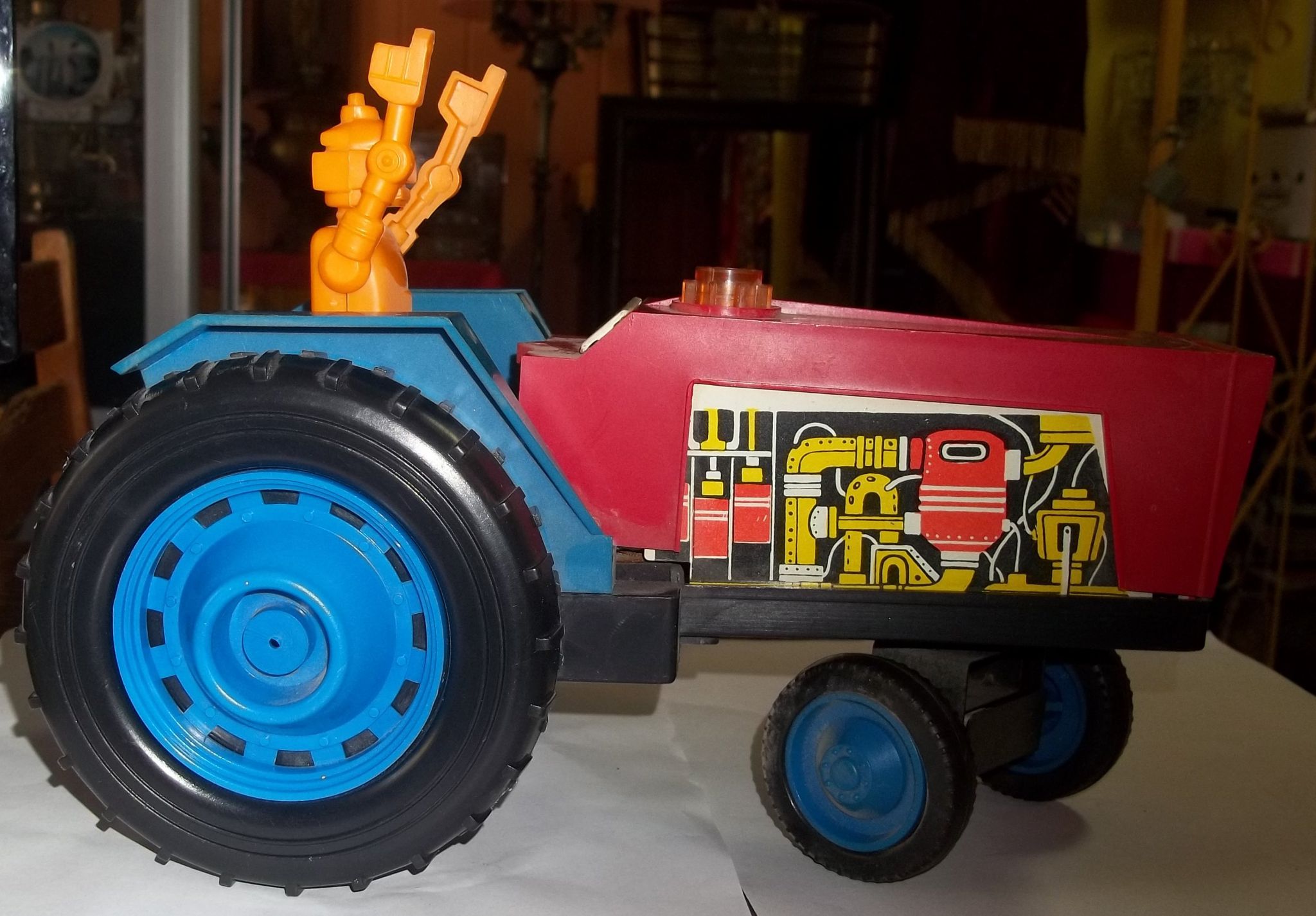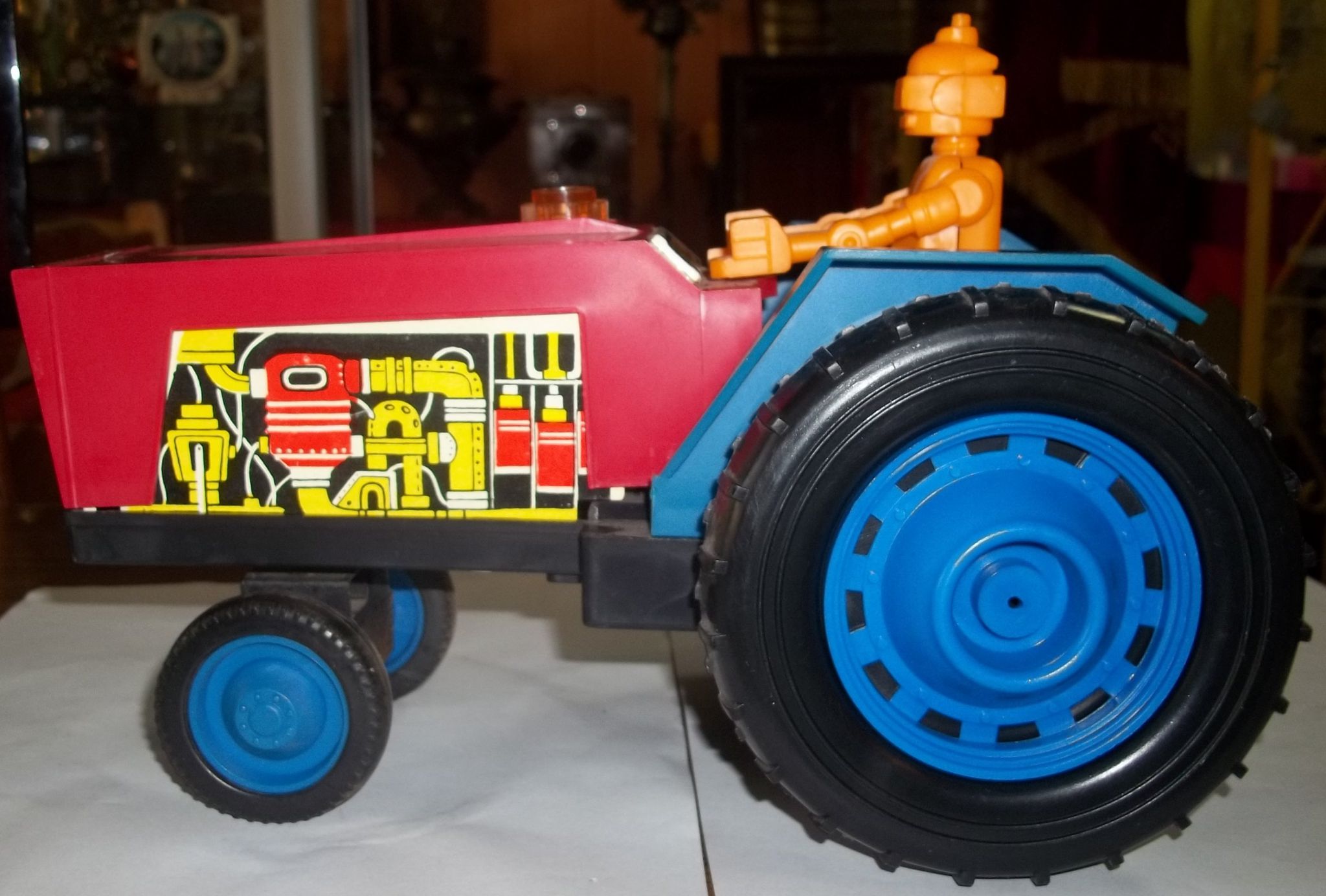 Детская игрушка трактор. Материал пластик. 70-80е года. СССР. Отличное состояние. Работоспособность не проверялась, но двигатель на месте. Все что должно крутится-крутится. Размер 26см х 16см. Высота 20 см.