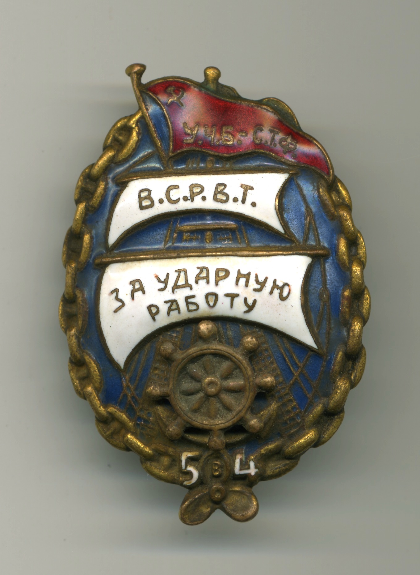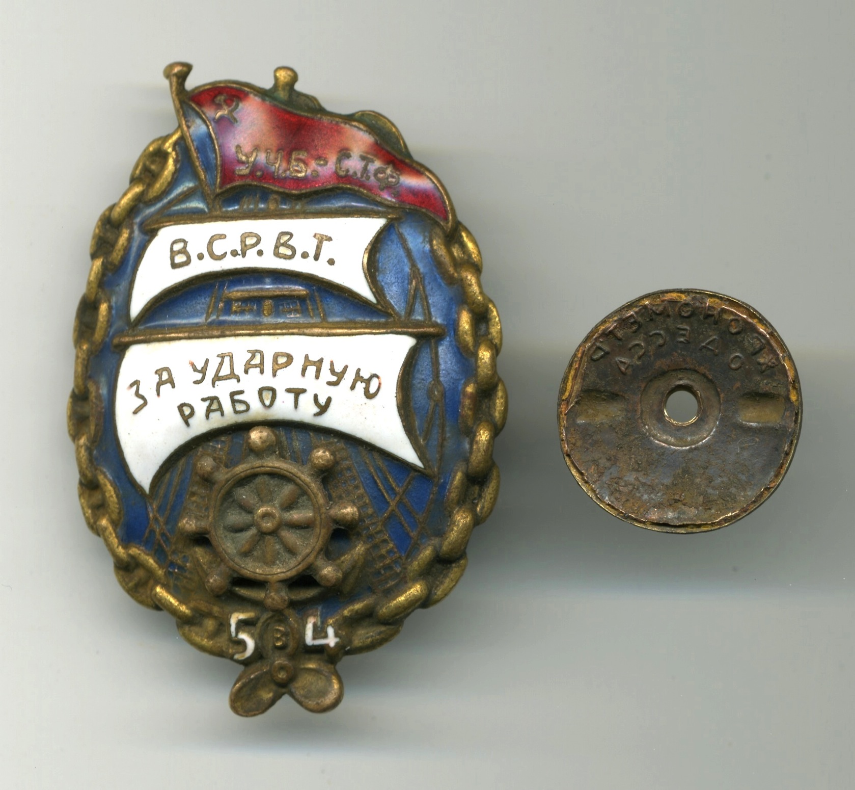Знаком награждали ударников Управления Черноморского бассейна советского Торгового флота (У.Ч.Б.- С.Т.Ф.)