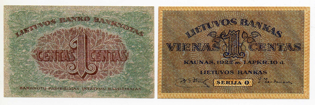 Литовская бона,1 цент 1922г. Каунас.