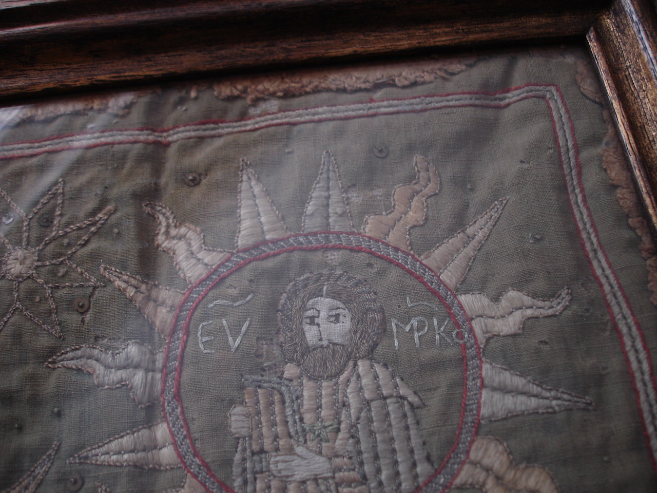 В раме под стеклом.