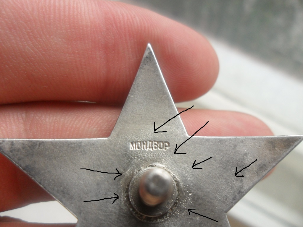 но сколько фото не ставьте, клеймо мондвор без вопросное а то что отмечено стрелками результат перегрева при перекладке....почерк и стиль написания номера мондворовский, что подтвердили примерами КЗ с номерами рядом....то что Вам на рассказывали о снятия, слоя переделав простою пятку КЗ монетный двор, это полнейшая чушь...такое было бы видно за километр, и клеймо с номером и медальоном уже бы настоящими не были...