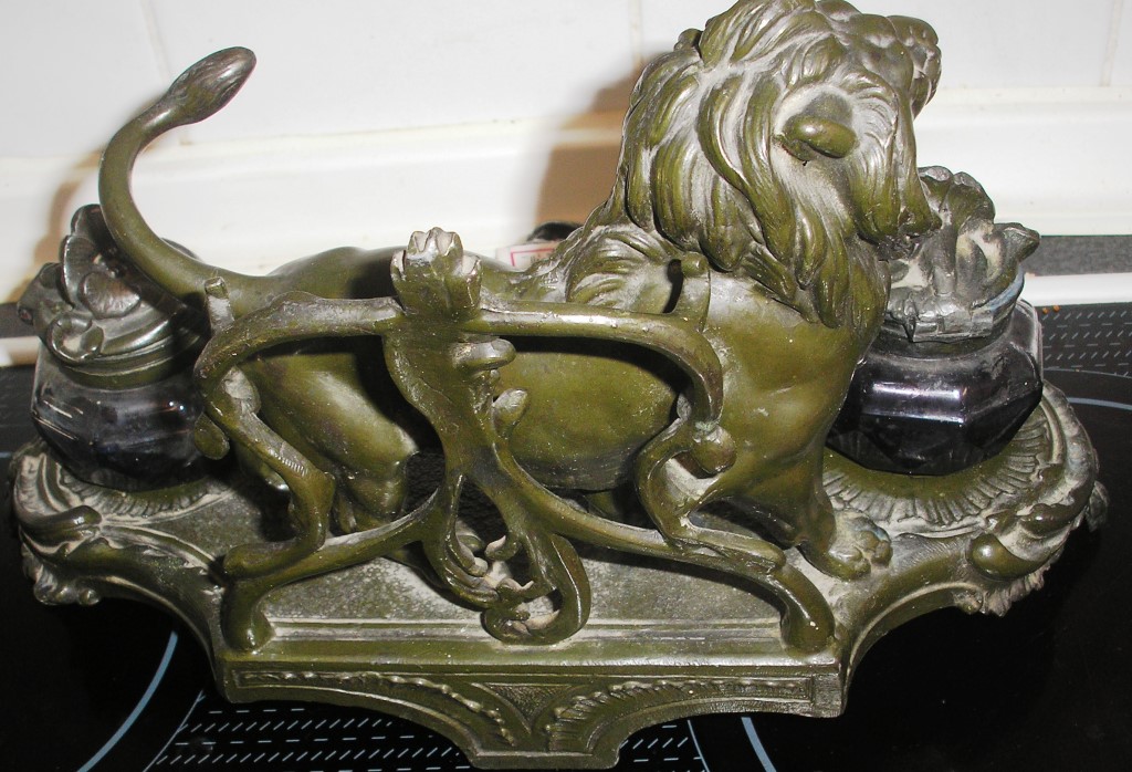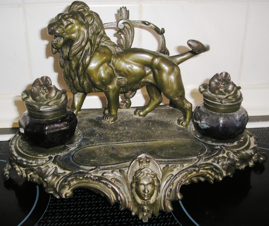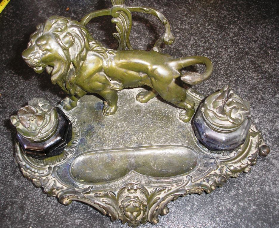 Старинный чернильный прибор "Лев" Размеры 16х16х33см, вес 2,5 кг, мпц в процессе, предложите за красоту.