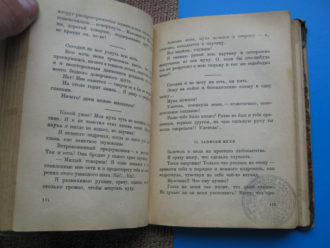 Владельческий "мраморный" переплёт с коленкоровым корешком. Потёртости углов обложки и краёв корешка. Выпадает титул и 15-16 стр. Печати несуществующей библиотеки.
