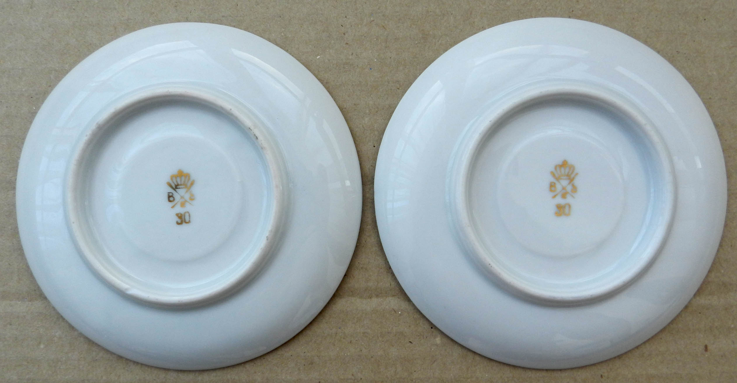 2 чайных блюдца Bremer&Schmidt, Тюрингия, Германия (до ГДР), состояние хорошее, всё целое. без сколов, трещин.