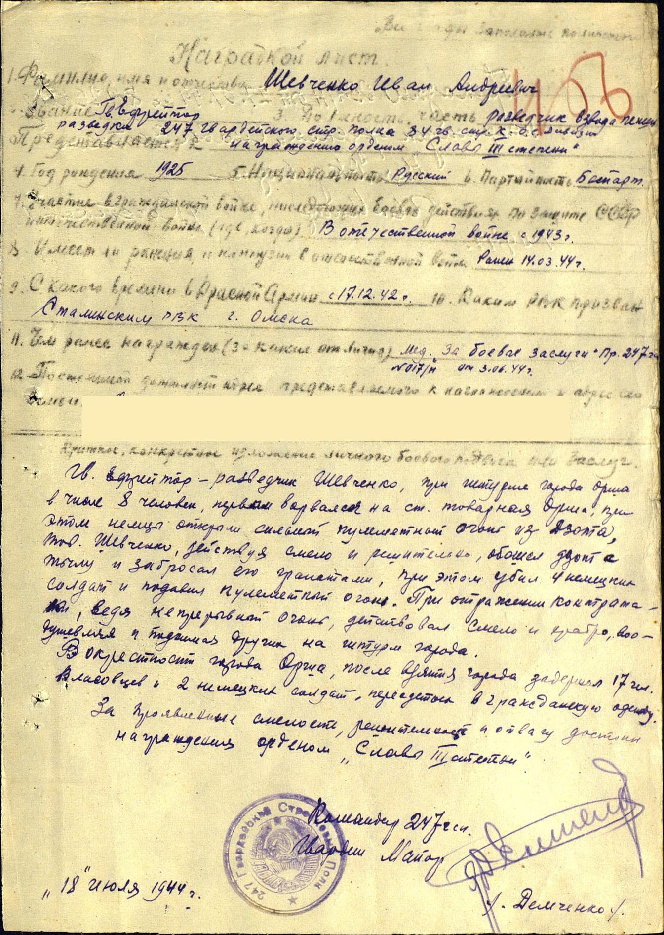 кавалер в свои неполные 20 лет был награжден ЗБЗ, Отвагой, Славой, ОВ 2 ст., ОВ 1 ст (посмертно).