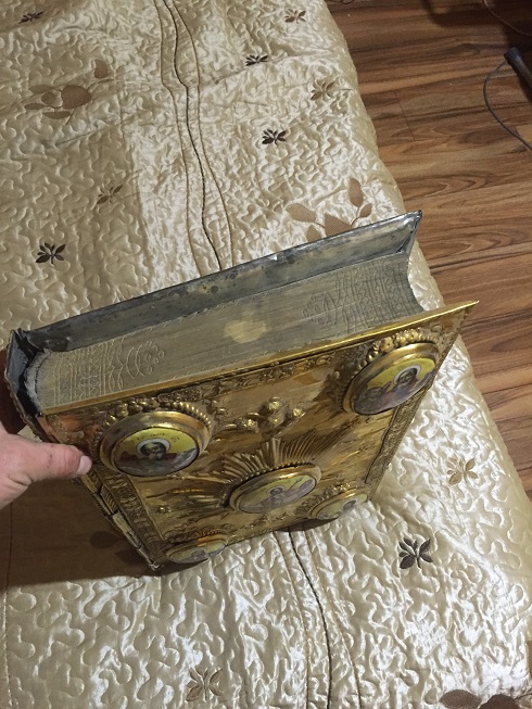 Вот такой фолиант! Высота 50см ширина 32см, толщина 9см вес тяжелая:) килограмм 10, красивые иллюстрации, финифть, состояние на фото, МПЦ 150тр, после прохождения очень быстро. можно тут можно в ЛС. Почта по РФ 700р посылка,