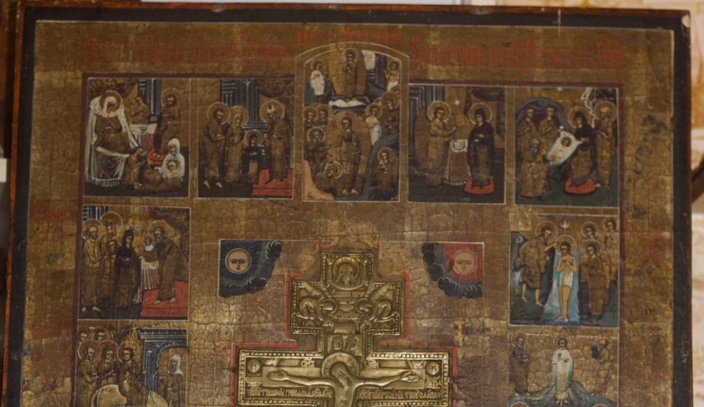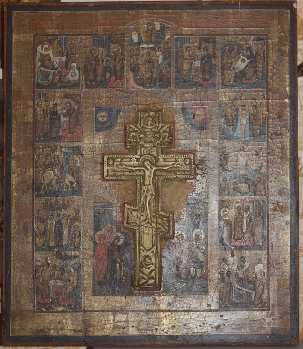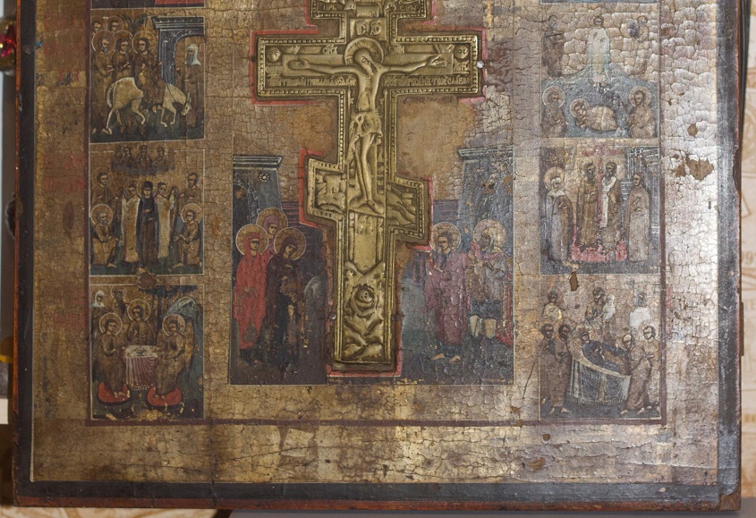размер 45 на 52.5 смв районе креста есть потертости, в остальном красочный слой сохранился весьма не плохо.