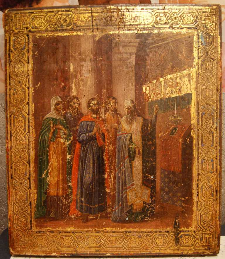 Это сцена осуждения патриархом образа Николы (как один из вариантов)