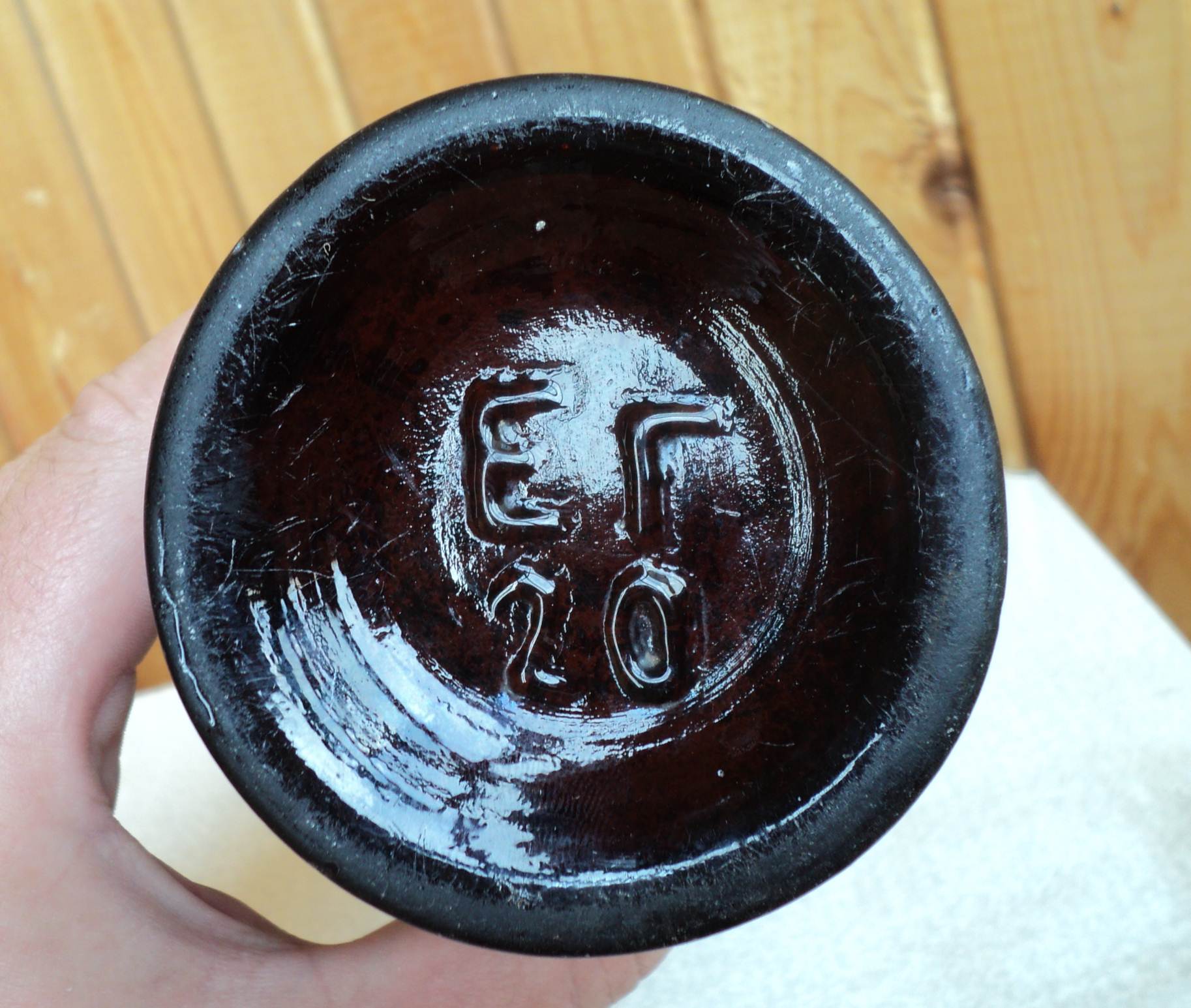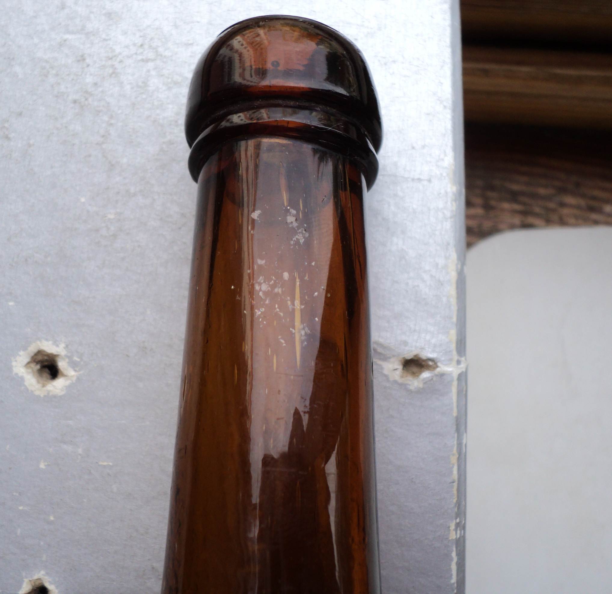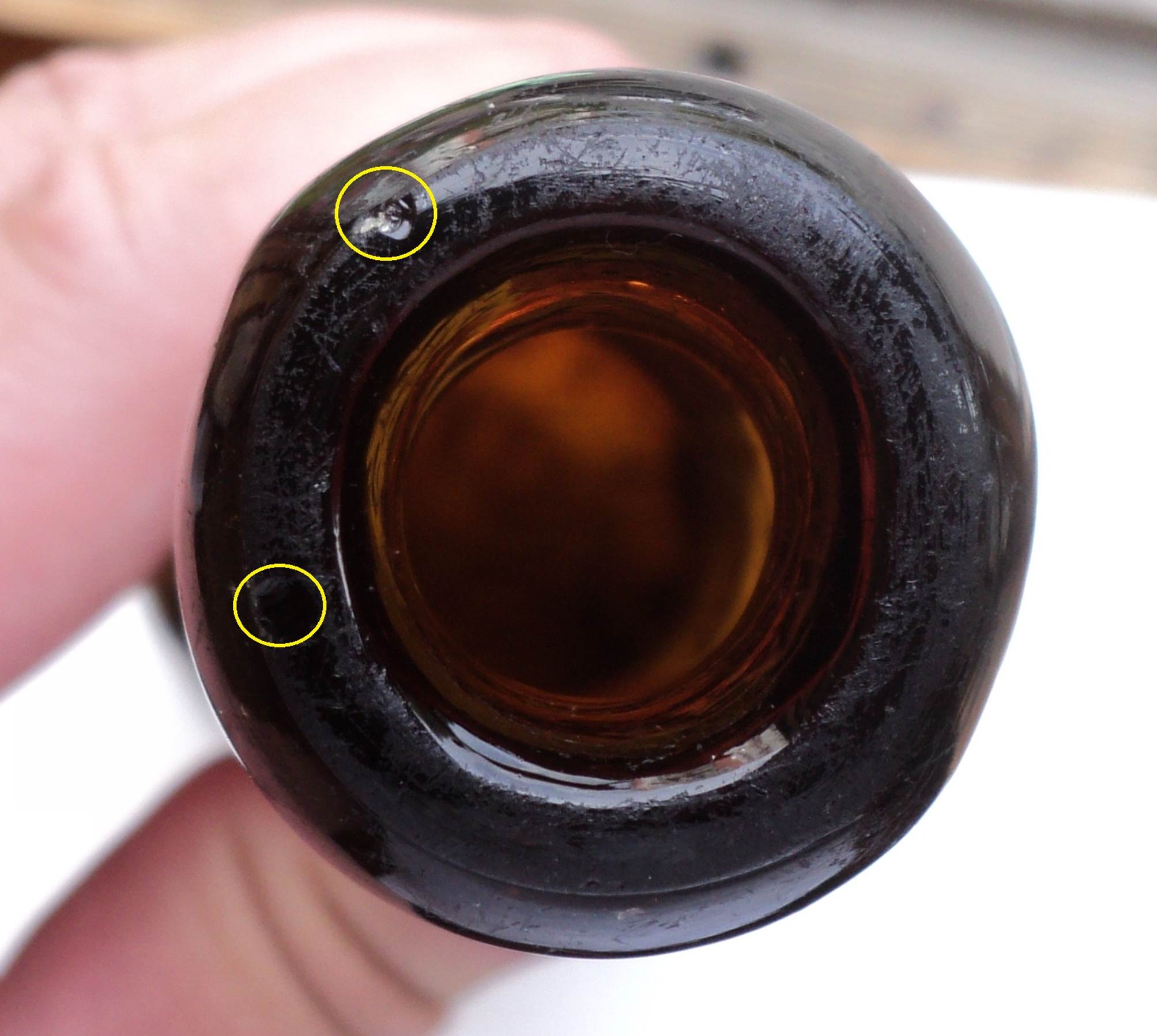 2 мелкие чешуйки на горлышке, местами мелкие тычки. Царапинки.