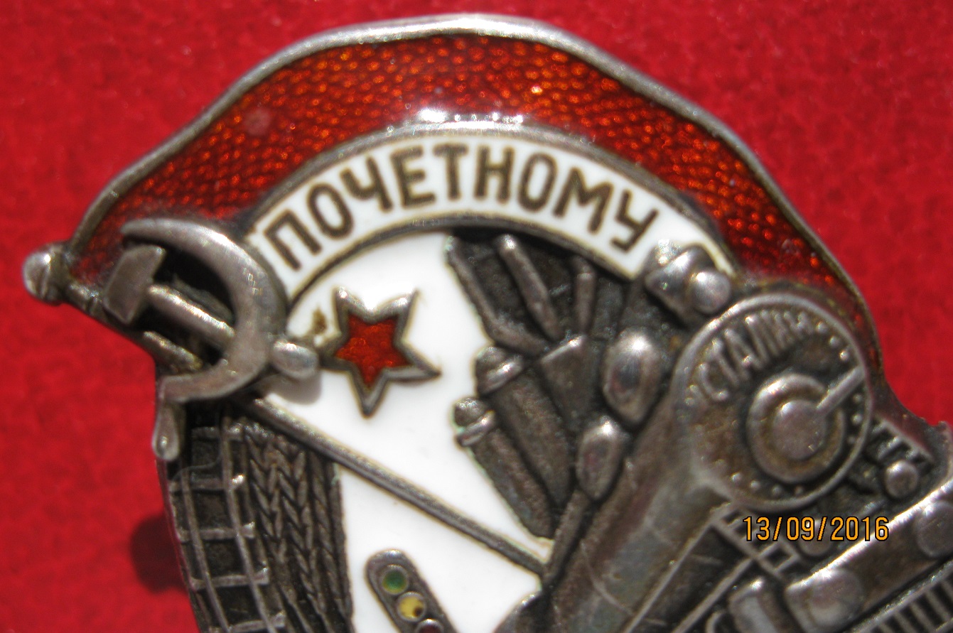 Знак куплен из семьи мною лично, 100% подлинность всех деталей гарантирую. Вручен в 1940 году машинисту паровоза железной дороги имени Молотова. Документ, к сожалению, утерян