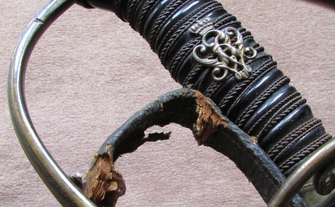 Оборвано кожаное стремя под палец. На картинке видно.