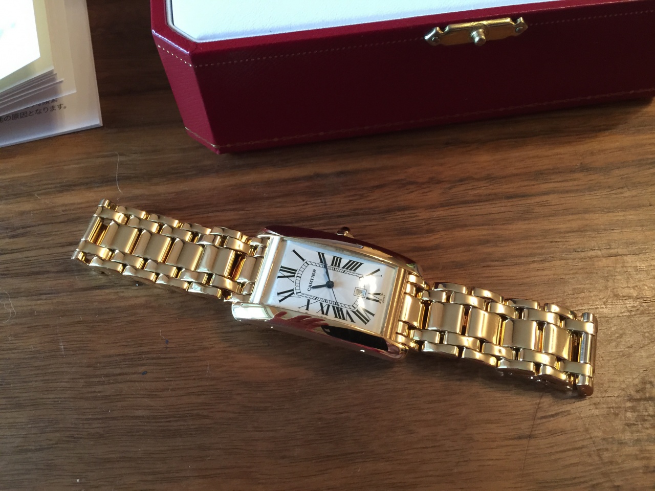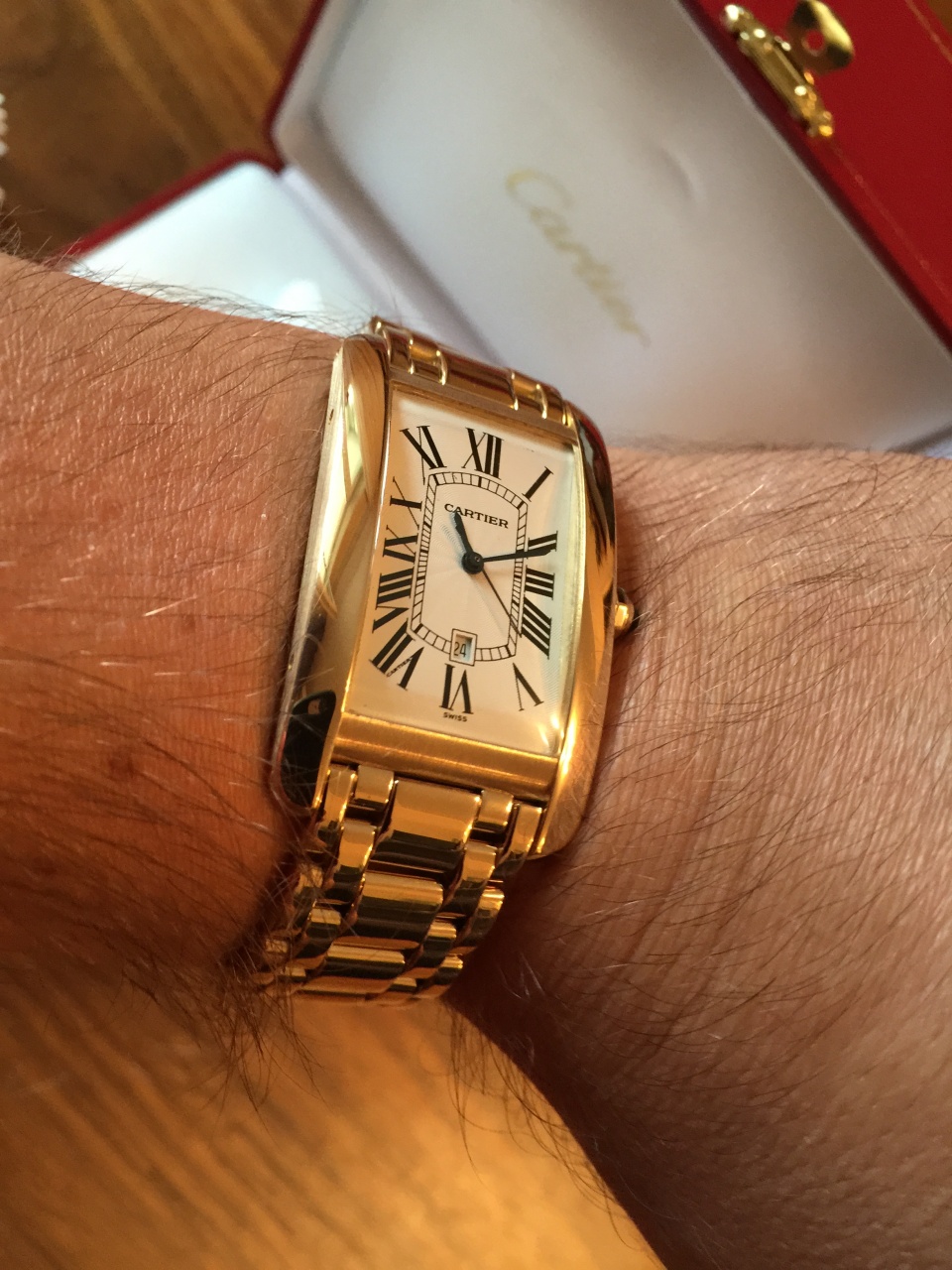 CARTIER AUTOMATIC LARGE SIZE TANK AMERICAINE YELLOW GOLD ON BRACELET W26031K2