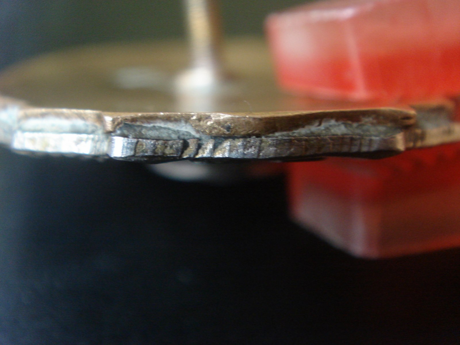 Эмаль целая. Поверхностная, слабо заметная чешуйка над