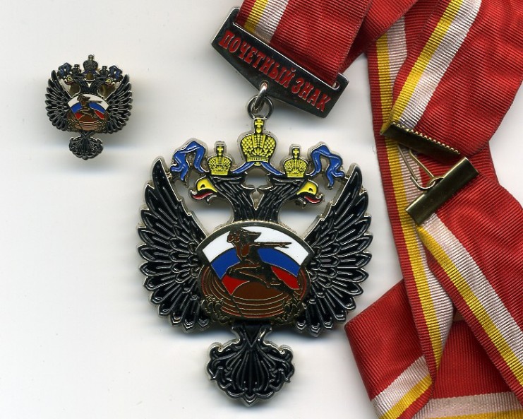 Почетный знак "За заслуги в развитии физической культуры и спорта в Российской Федерации" № 8274 + фрачник. Тяжелый металл, горячая эмаль, накладной центральный медальон.