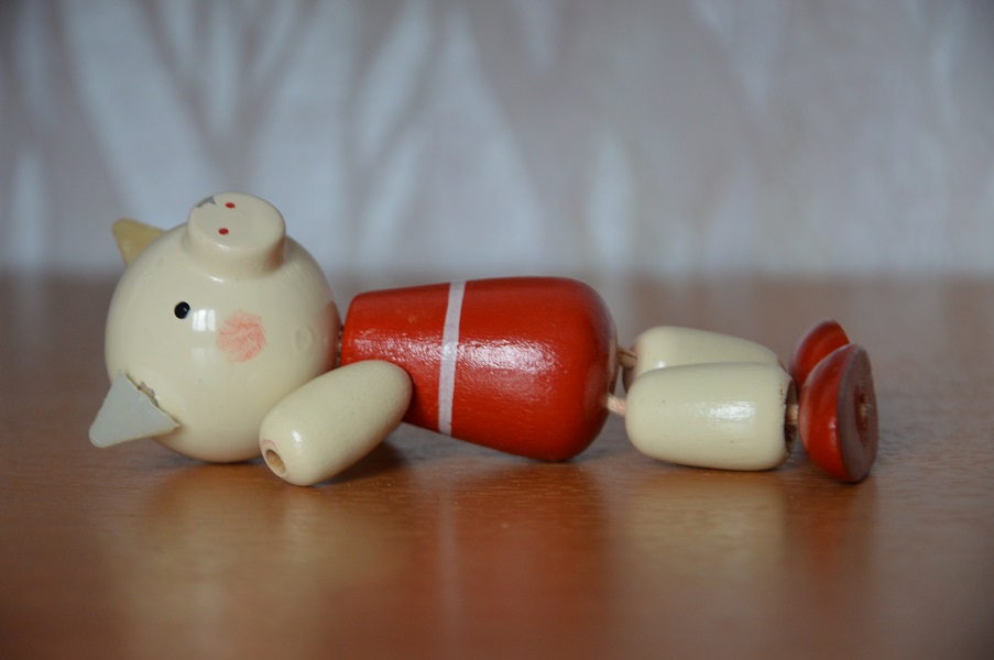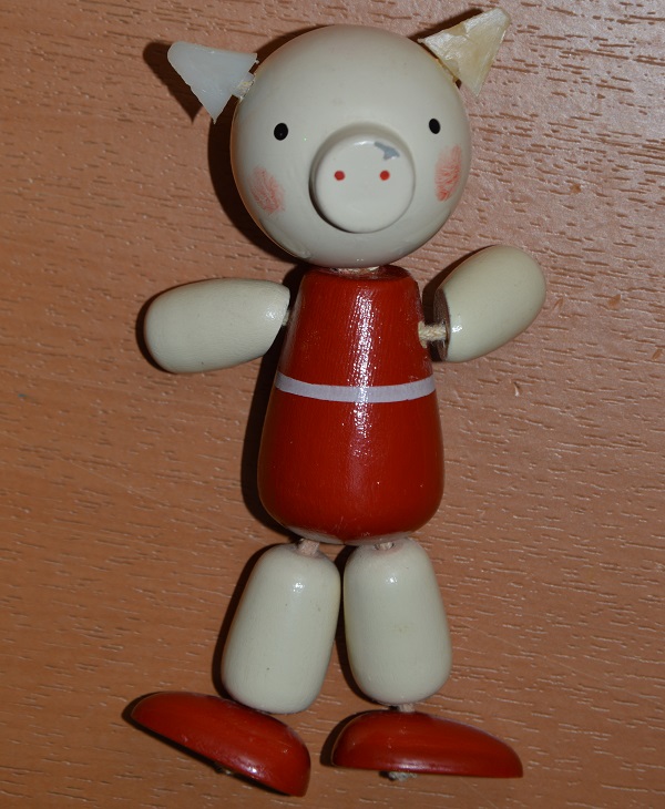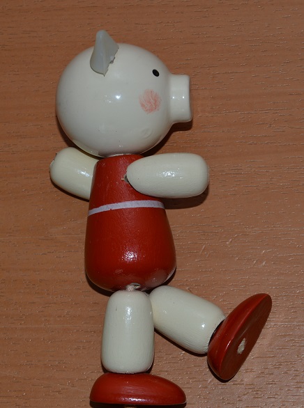 Поросёнок деревянный, ушки пластмассовые.