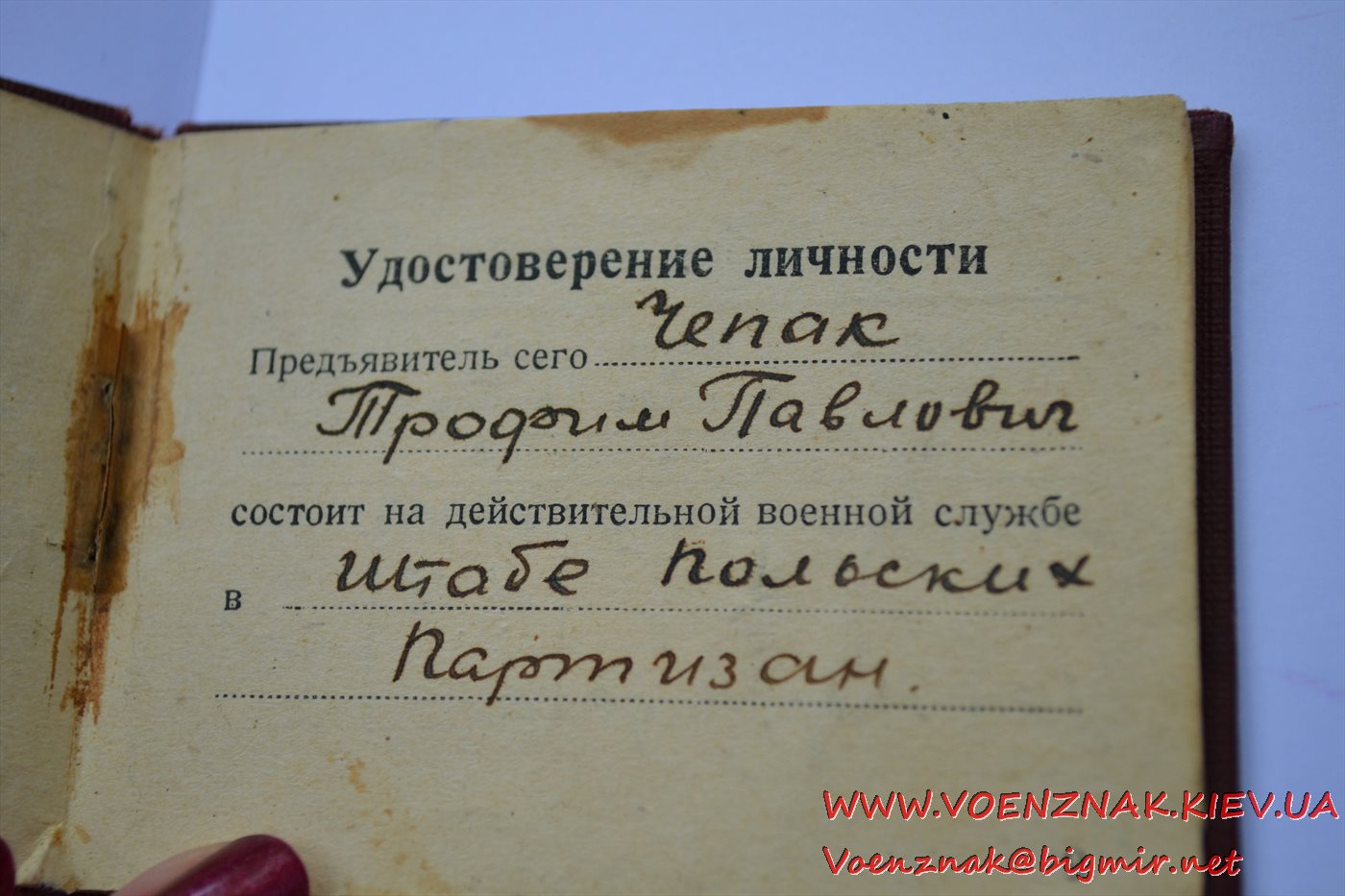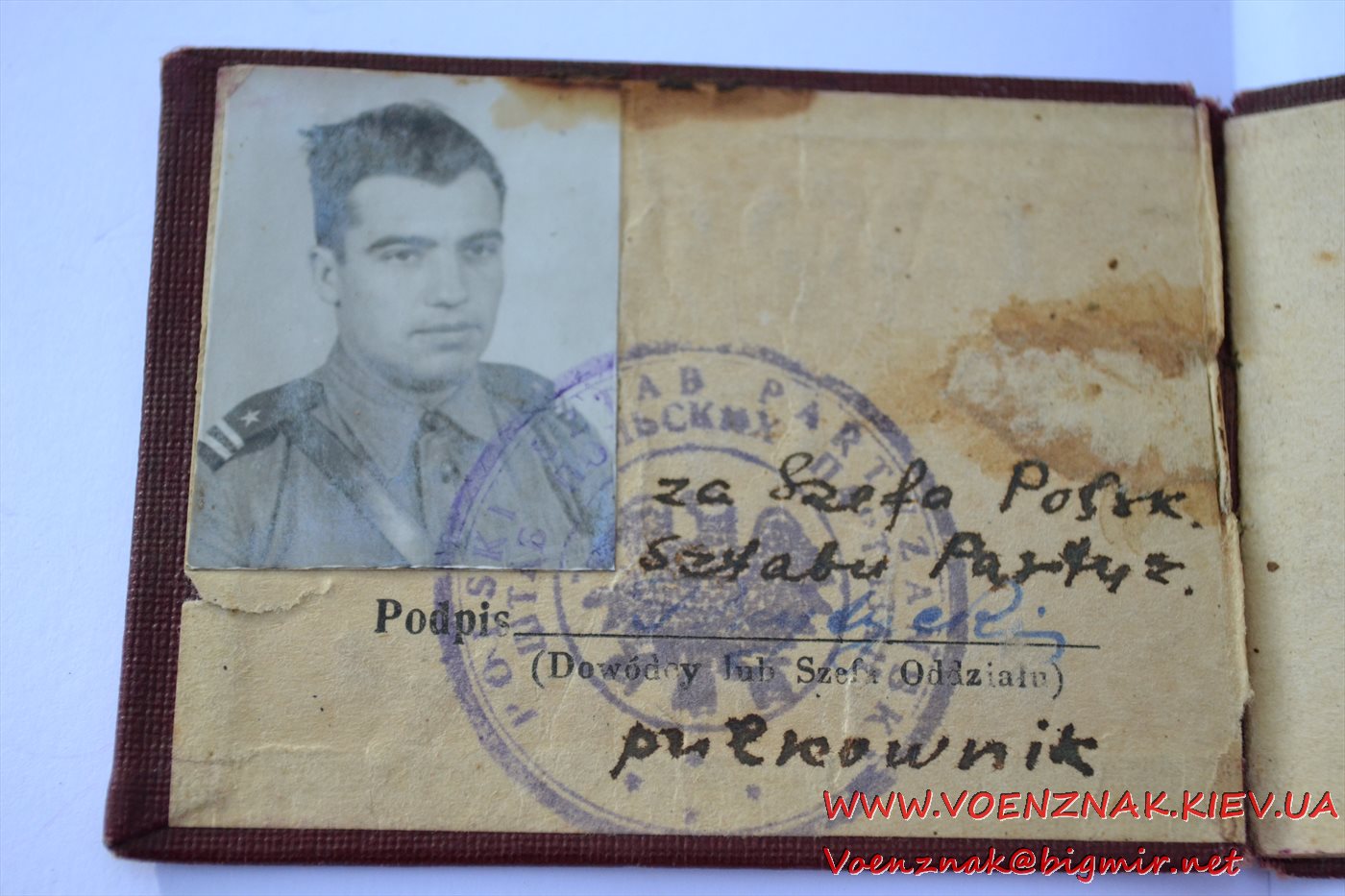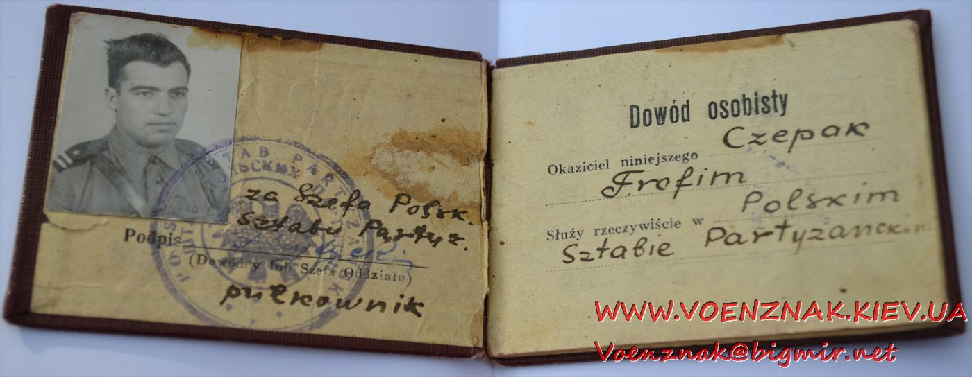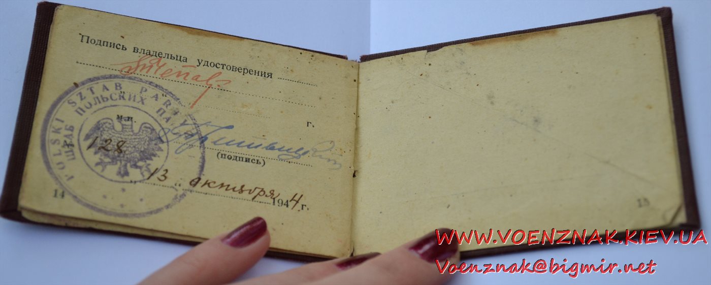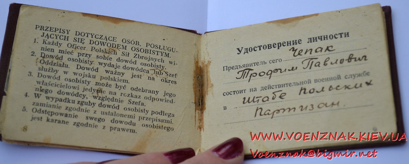 Удостоверение личности на майора Штаба польских партизан