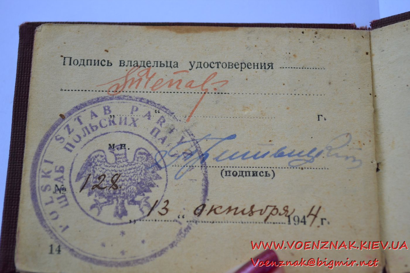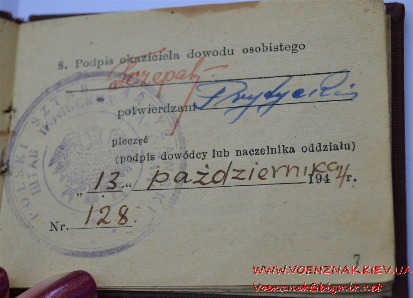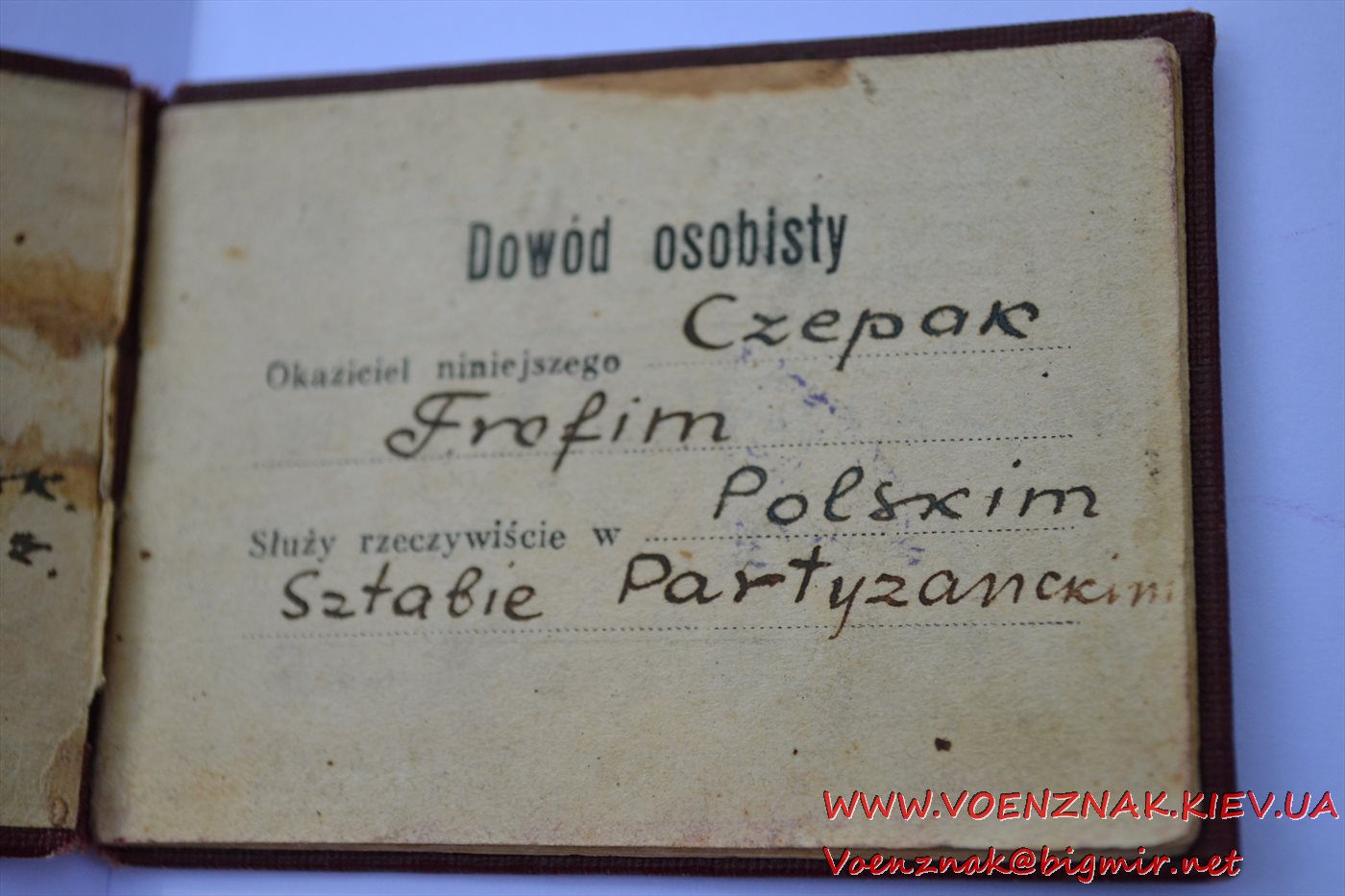 Удостоверение личности на майора Штаба польских партизан