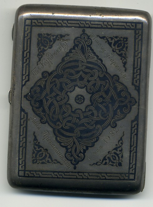 Серебрянный портсигар onos - 01 июл 2007 10:39.45 × Мини профиль пользователя onos Сообщения: 1666 Зарегистрирован: 10 ноя 2006 04:57.35 Откуда: Беларусь Статус: Не в сети - 01 июл 2007 10:39.45 #485246 Серебрянный портсигар 1932г. Надпись: " тов. Курдюкову- лучшему ударнику завода Прокатштамп 1 мая 1932г." От 10 т. руб. Фото