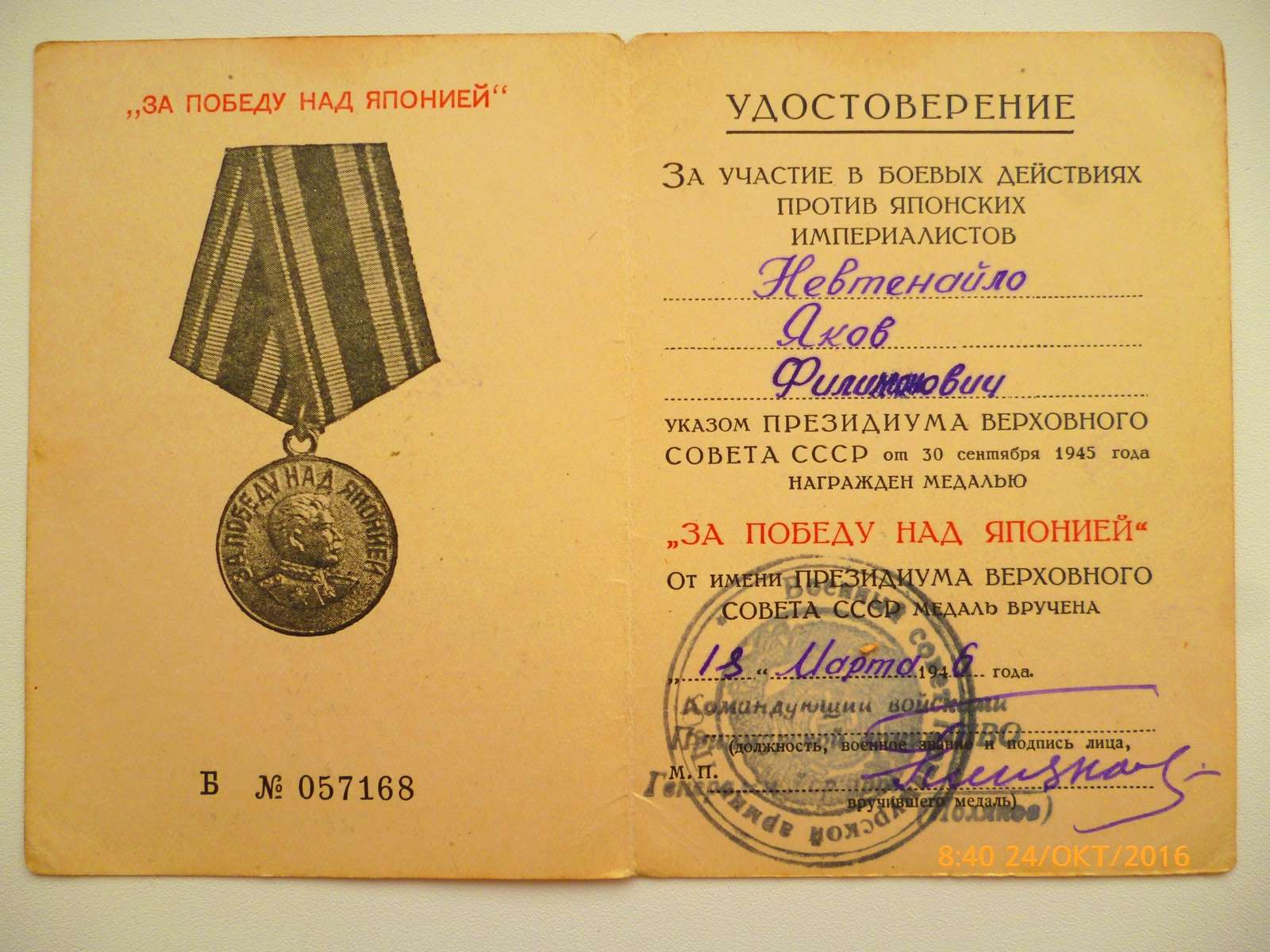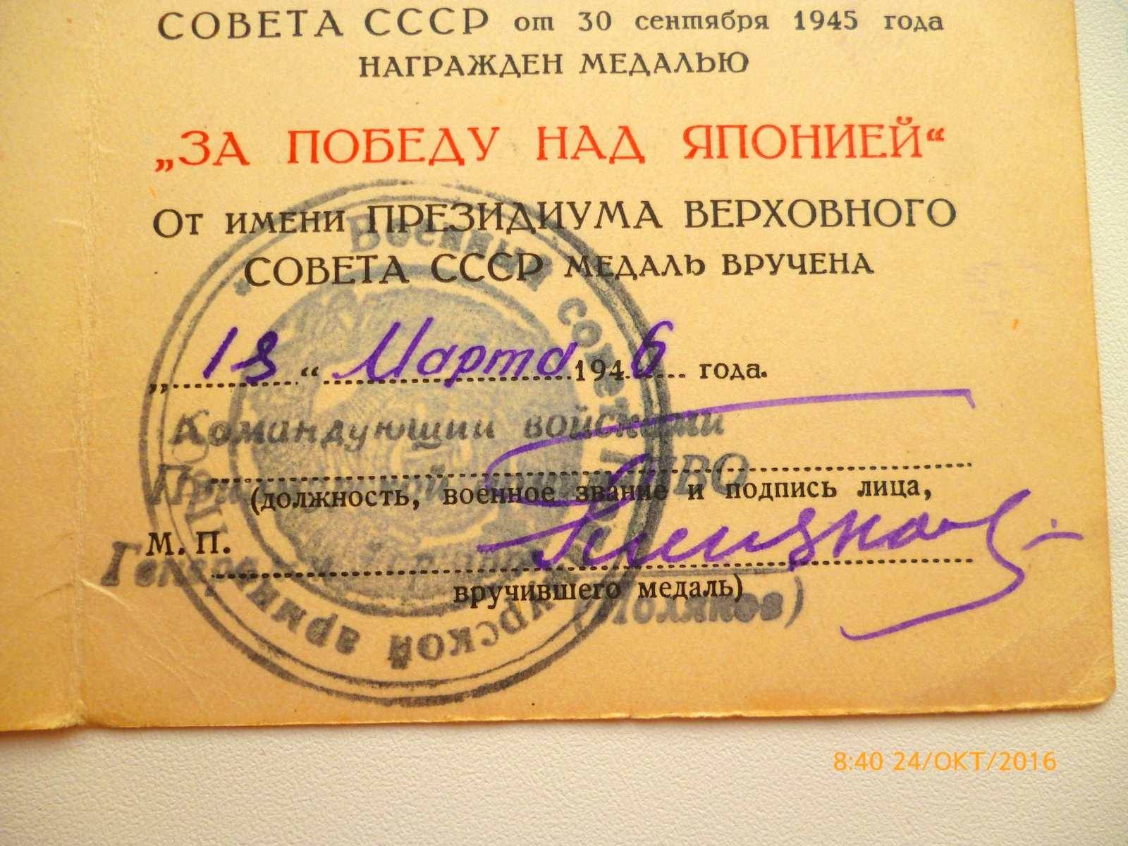 А на ЗПНЯ 18.03.1946год . В штампе ещё старое название
