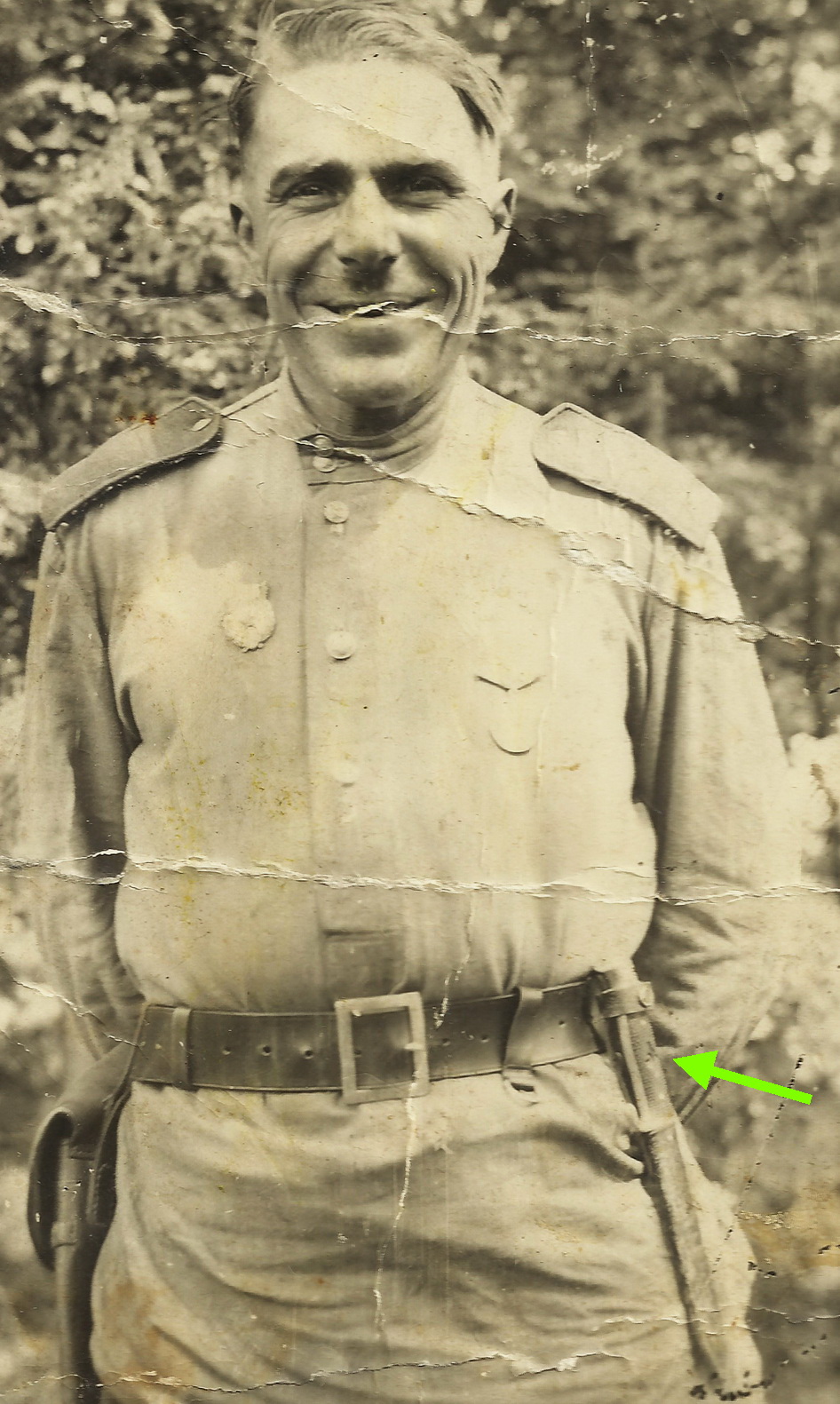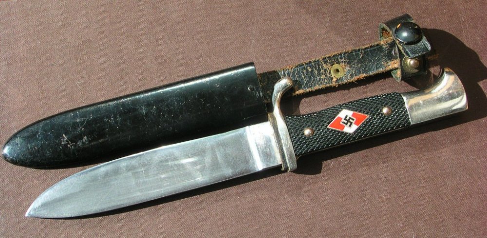 На фото видно, что знак со свастикой с рукоятки удален.