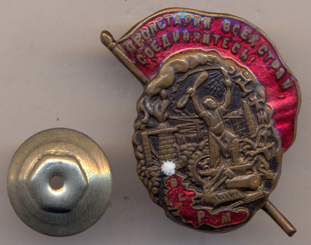 Сохранность очень хорошая. Незначительные следы ношения. По эмали : СКОЛ эмали в левом верхнем углу Знамени +ТРЕЩИНКИ на Знамени+ЧЕШУЙКА под буквой С.
