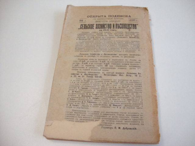 Журнал Министерства Земледелия. Петроград. 1916г. Типография Сельского Вестника.