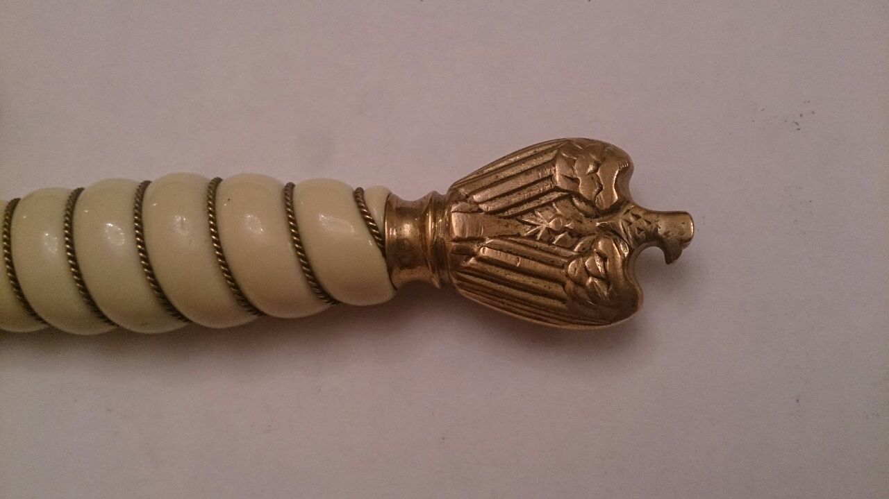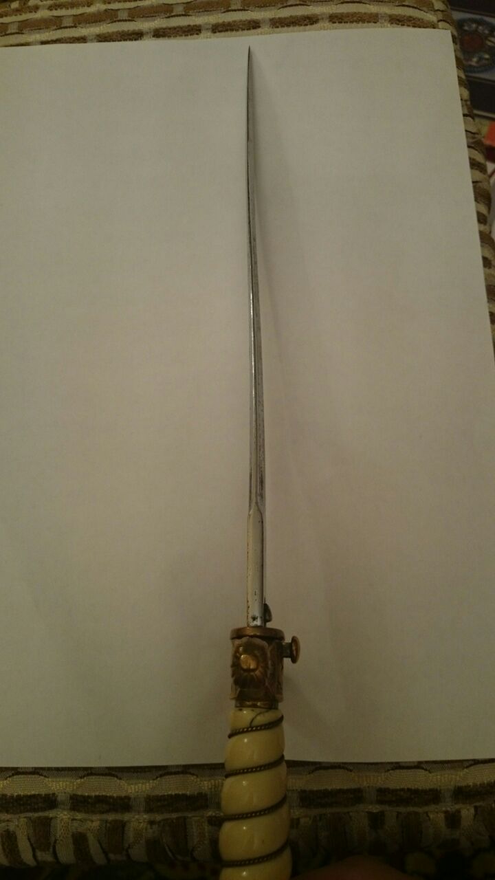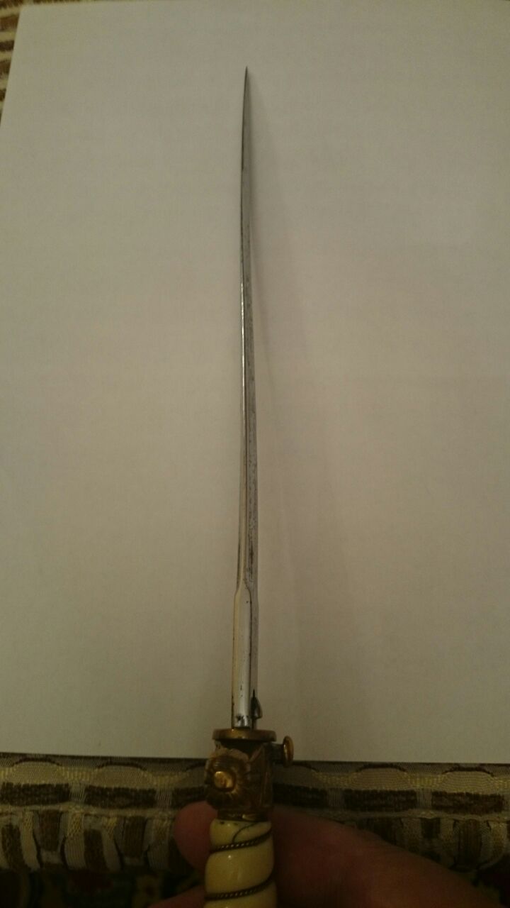 Состояние на фото. Клинок немного деформирован, есть зазубрина. В ножнах нет пружин. Доставка по РФ за счет покупателя.