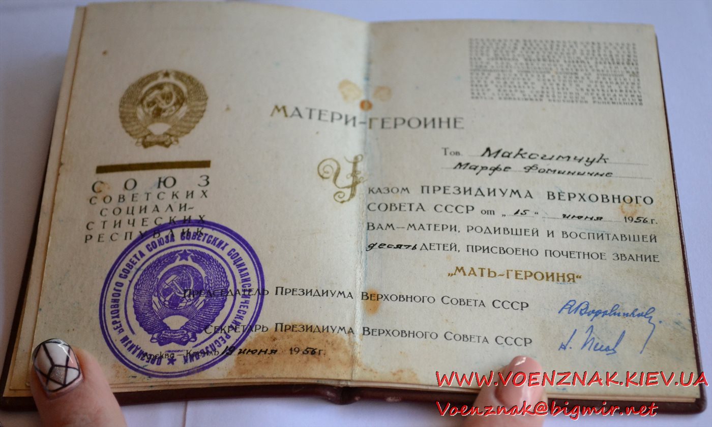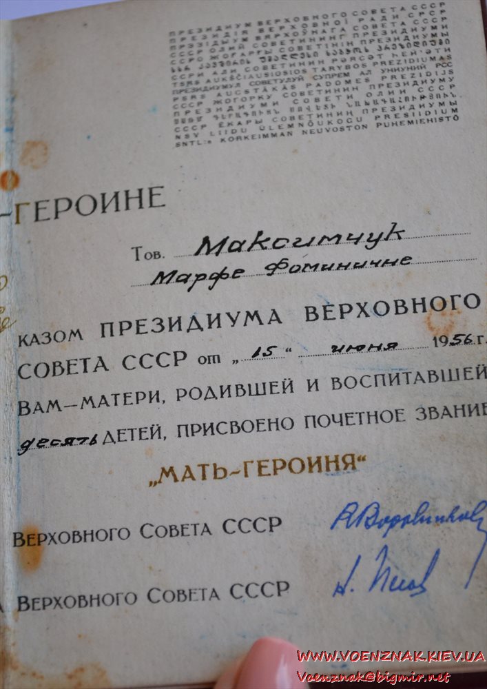 Малая грамота к Ордену "Мать-героиня"