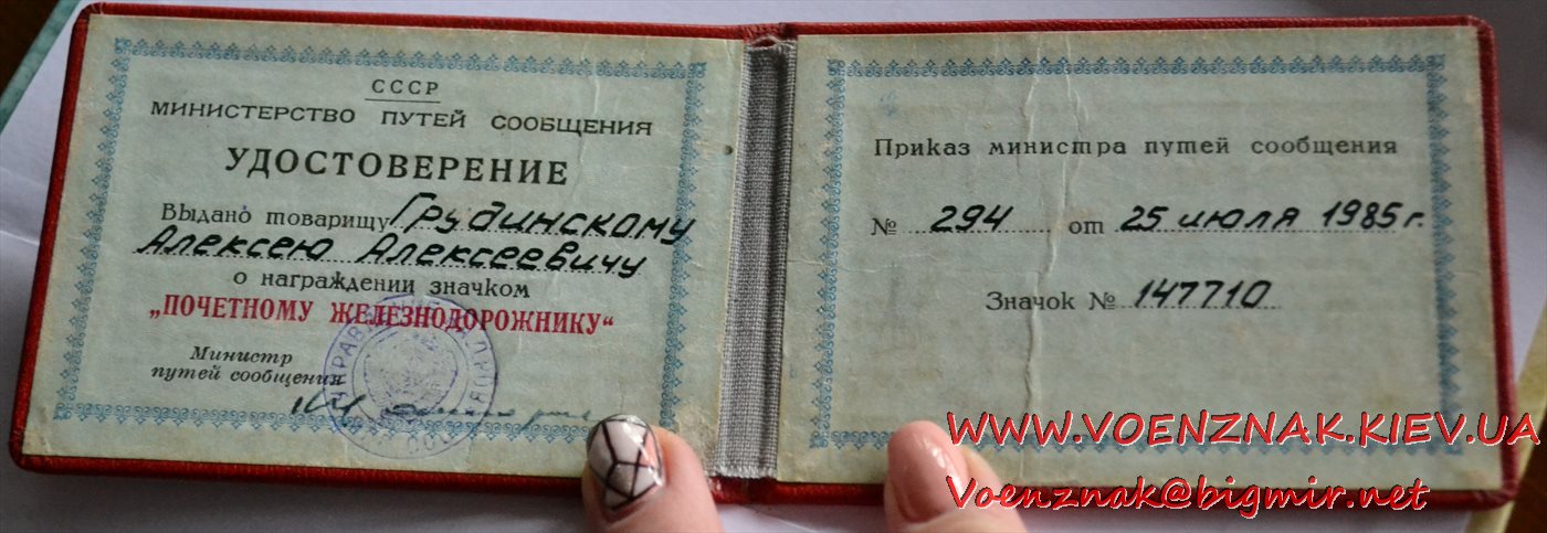 Герой Украины писал(а):Удостоверение к знаку "Почетному железнодорожнику" № 294, периода СССР