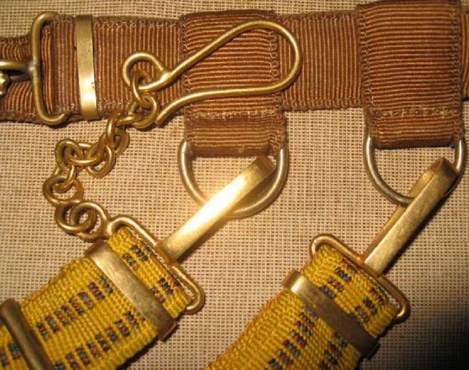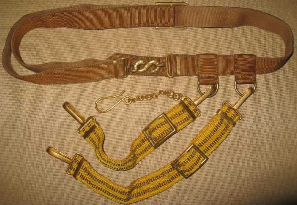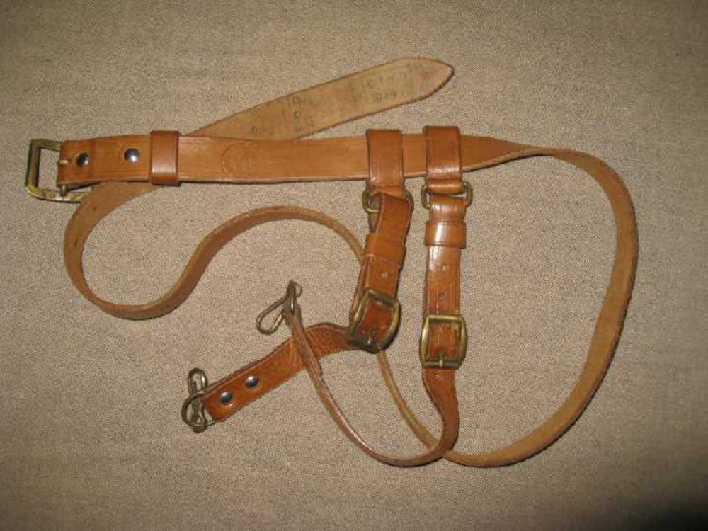 Снаряжение из кожи введено в 1949 году.В1952 году заменено на тканевое с пряжкой в виде змейки как в ВМФ.Кортик принадлежал герою СССР
