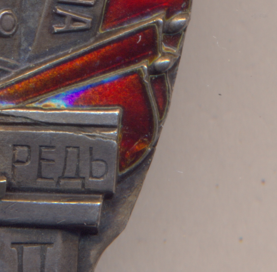 Сохранность очень хорошая. Незначительные следы ношения. Из проблем - ТРЕЩИНЫ и МИКРОЧЕШУЙКА на правом нижнем уголке Ленты. ( показал на скане ).