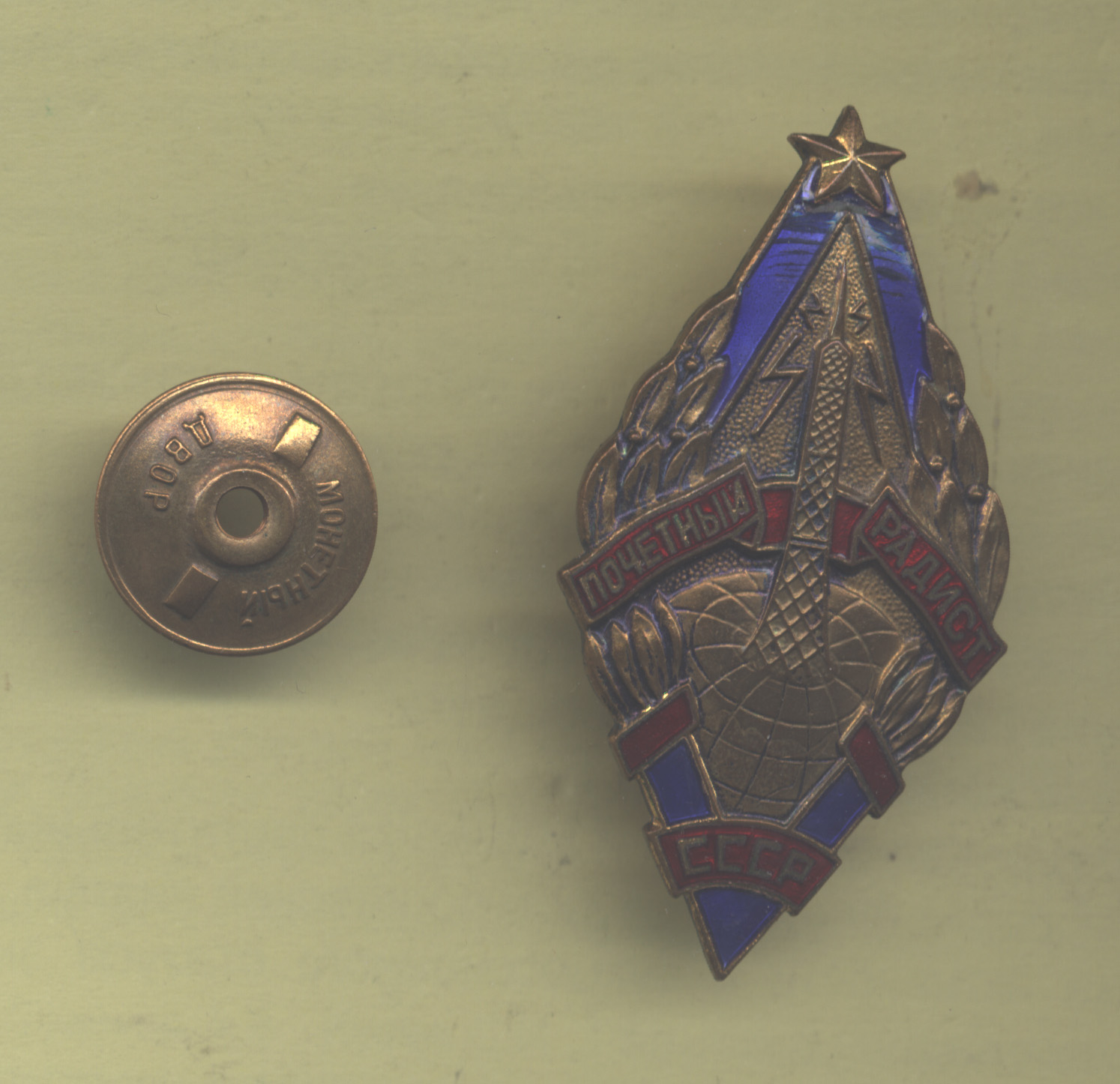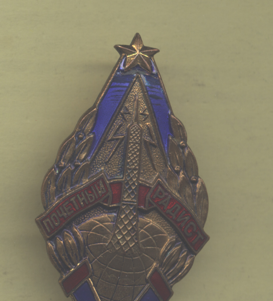 Нагрудный знак "Почетный радист" - ММД, тяжелый металл, винт, синяя и красная эмали.