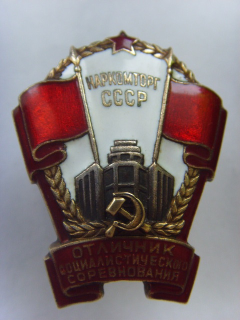 ОТЛИЧНИК НАРКОМТОРГ № 527 СиМ НАКЛАДНОЙ, чешуйка верхнего луча звездочки, в остальном отличное состояние!