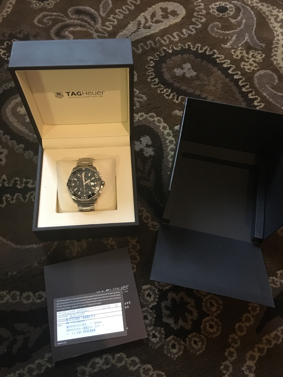 Приветствую всех. Продам часы Tag Heuer Aquaracer CAY211A.BA0927. Куплены в 2016 году, на гарантии. Состояние отличное, носились не часто. Присутствуют только царапинки по корпусу и браслету от ношения. Стоимость новых часов у дилеров - более 200 000 рублей.