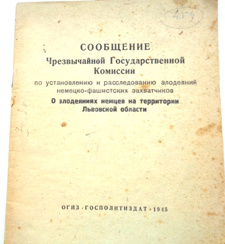 Сообщение Чрезвычайной Государственной комиссии по установлению и расследованию злодеяний немецко-фашистских захватчиков .О злодеяниях немцев на территории Львовской области.