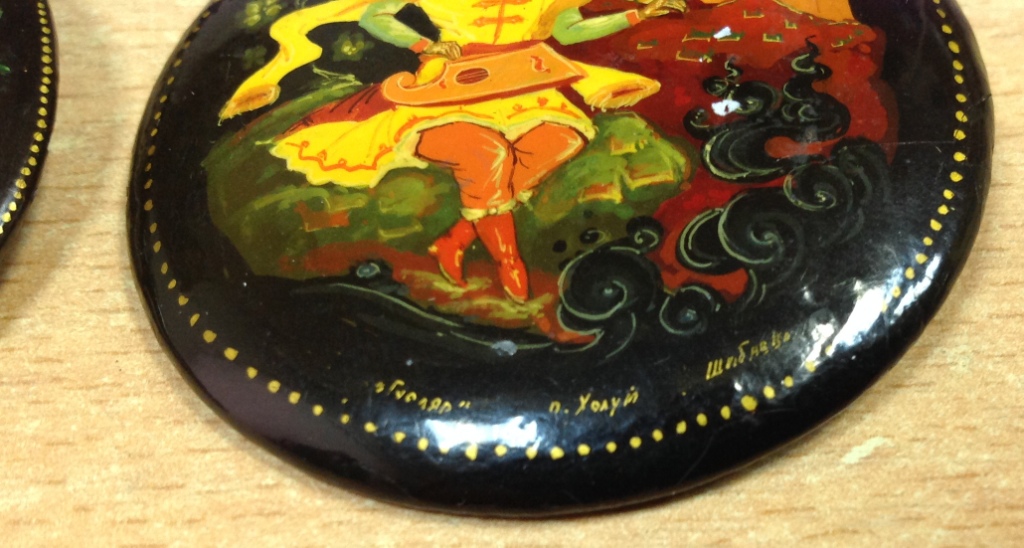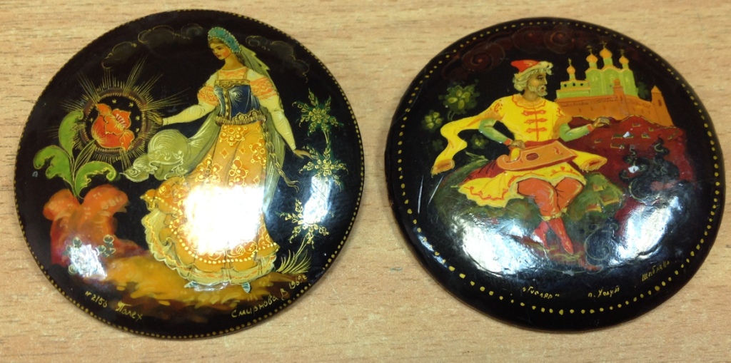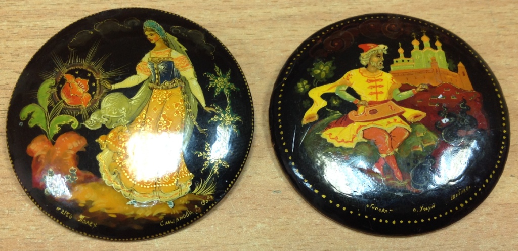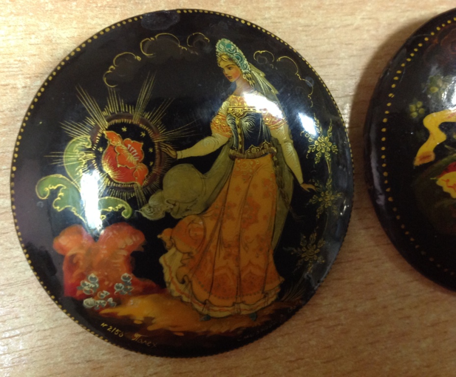 2 брошки Палех 1969 Смирнова и Холуй Шибаева Moel - 23 ноя 2016 22:43.50 × Мини профиль пользователя Moel Звание: Внимание! Кидала! Сообщения: 22748 Зарегистрирован: 31 авг 2005 21:49.38 Откуда: Россия Статус: Не в сети - 23 ноя 2016 22:43.50 #5828879 Диаметр 5см. На Холуйской нет булавки. Предложите по РФ! Фото