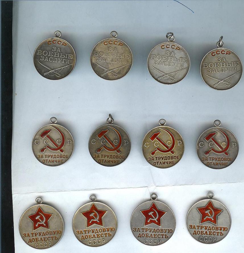Медали Серп и Молот, За Трудовую Доблесть, За Трудовое Отличие, За Доблестный Труд в Великой Отечественной Войне,За Восстановление Предприятий Чёрной Металлургии Юга, За Восстановление Угольных Шахт Донбасса, За Освоение Целинных Земель, За Строительство БАМ, За Преобразование Нечерноземья РСФСР, За Освоение Недр и Развитие Нефтегазового Комплекса Западной Сибири, Ветеран Труда