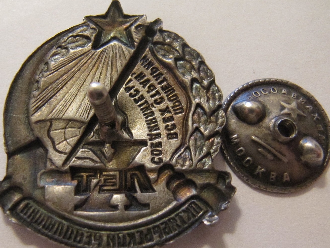 Эмаль на звездочке и знамени со сколами...