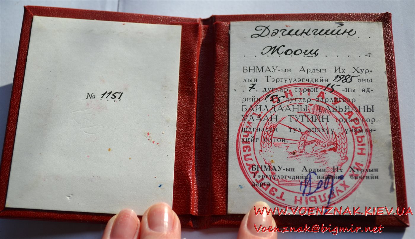 Документ к монгольскому Ордену Боевого Красного Знамени
