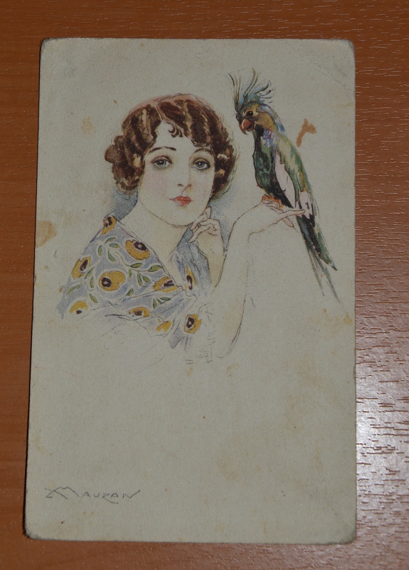 Открытка. Девушка с попугаем. Италия