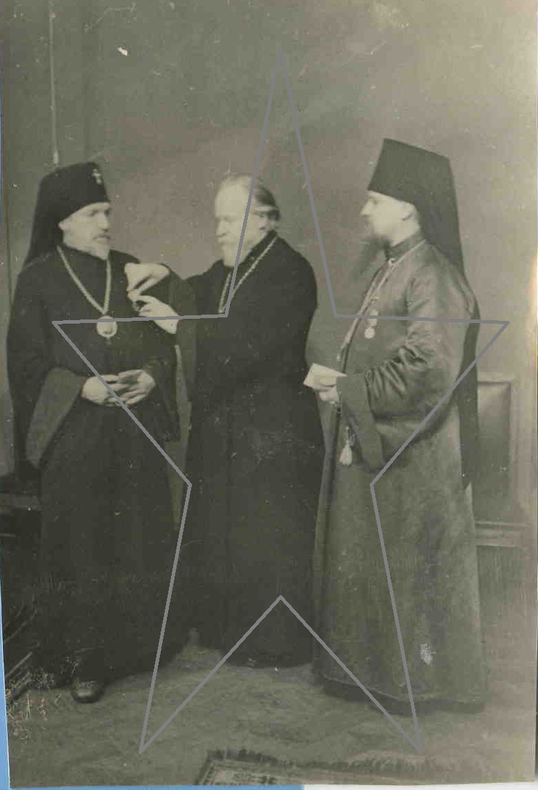 На снимке -- архиепископ Куйбышевский Алексий,митрополит Николай Крутицкий,епископ Сергий после вручния медали "За оборону Москвы". Москва,1944 г.