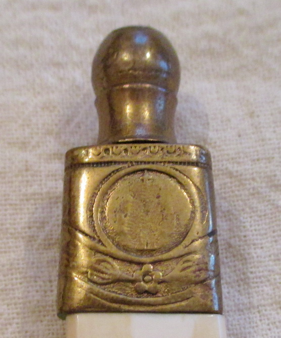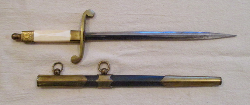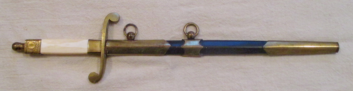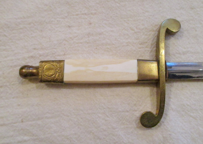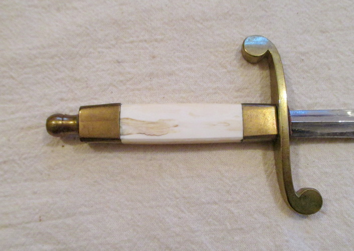 Принесли на продажу. Вензель на головке снесен. Ножны металические крашенные. Краска родная. Клейм нет, за исключением на гарде выбита цыфра 2. Размеры: общая длина 34 см, длина без ножен 30,5 см, длина клинка 20,5 см