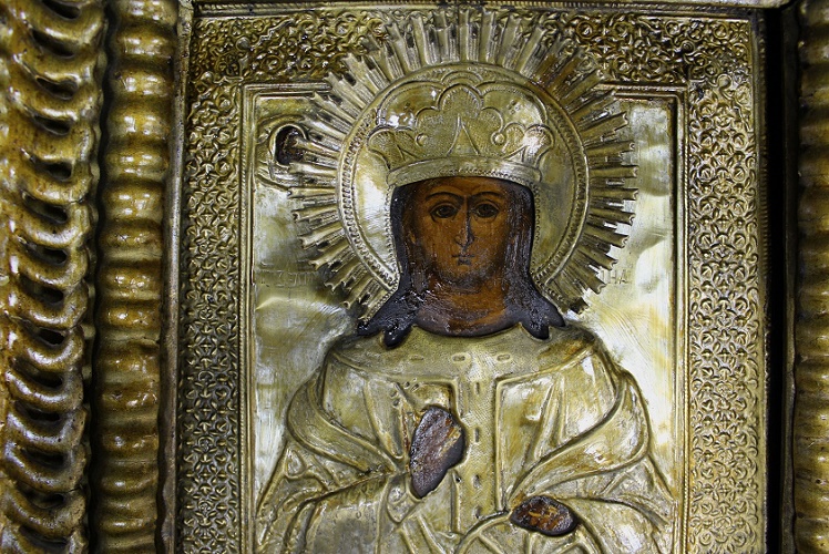 Открытые места рук и лика когда-то были покрыты олифой, видны следы на окладе и киоте.