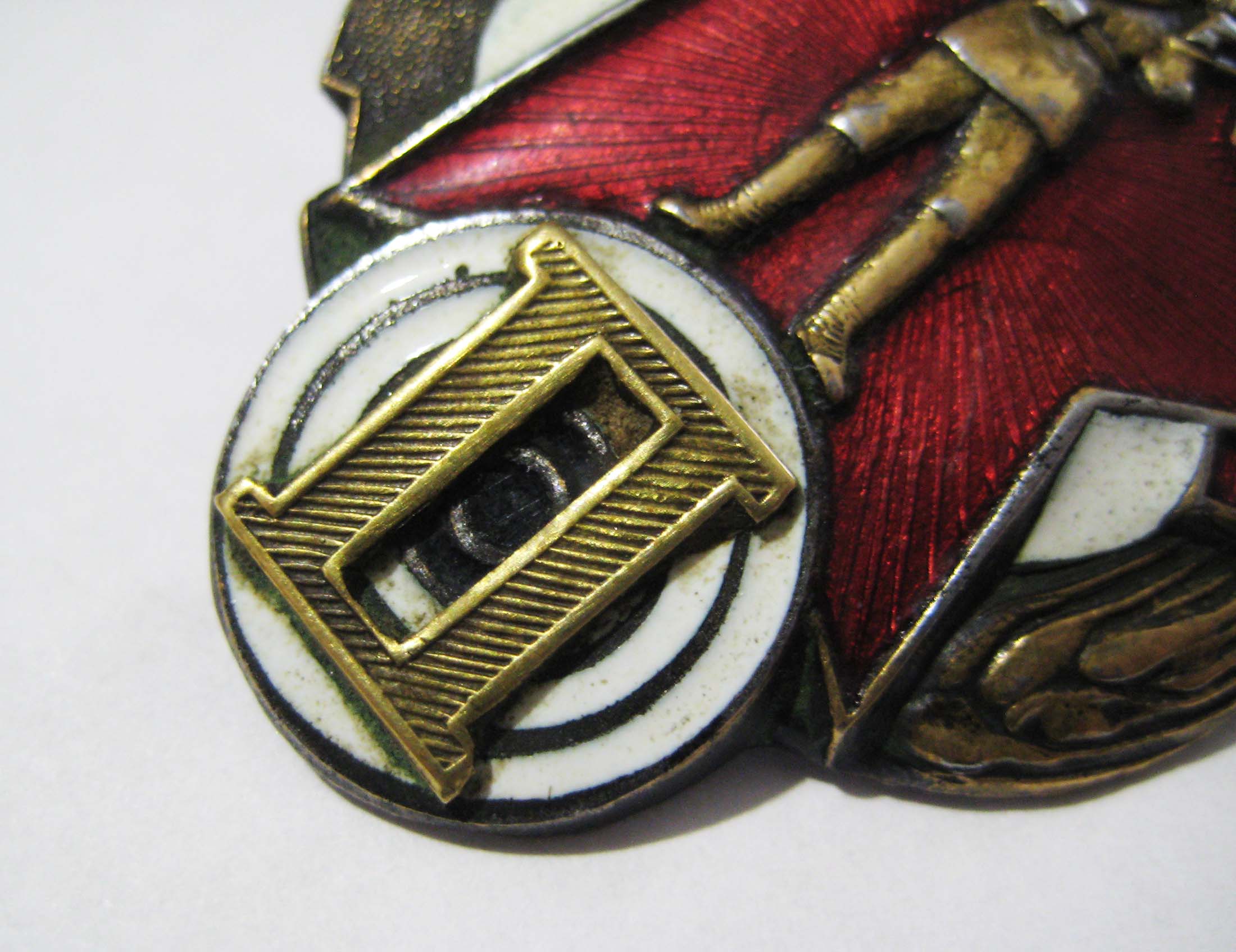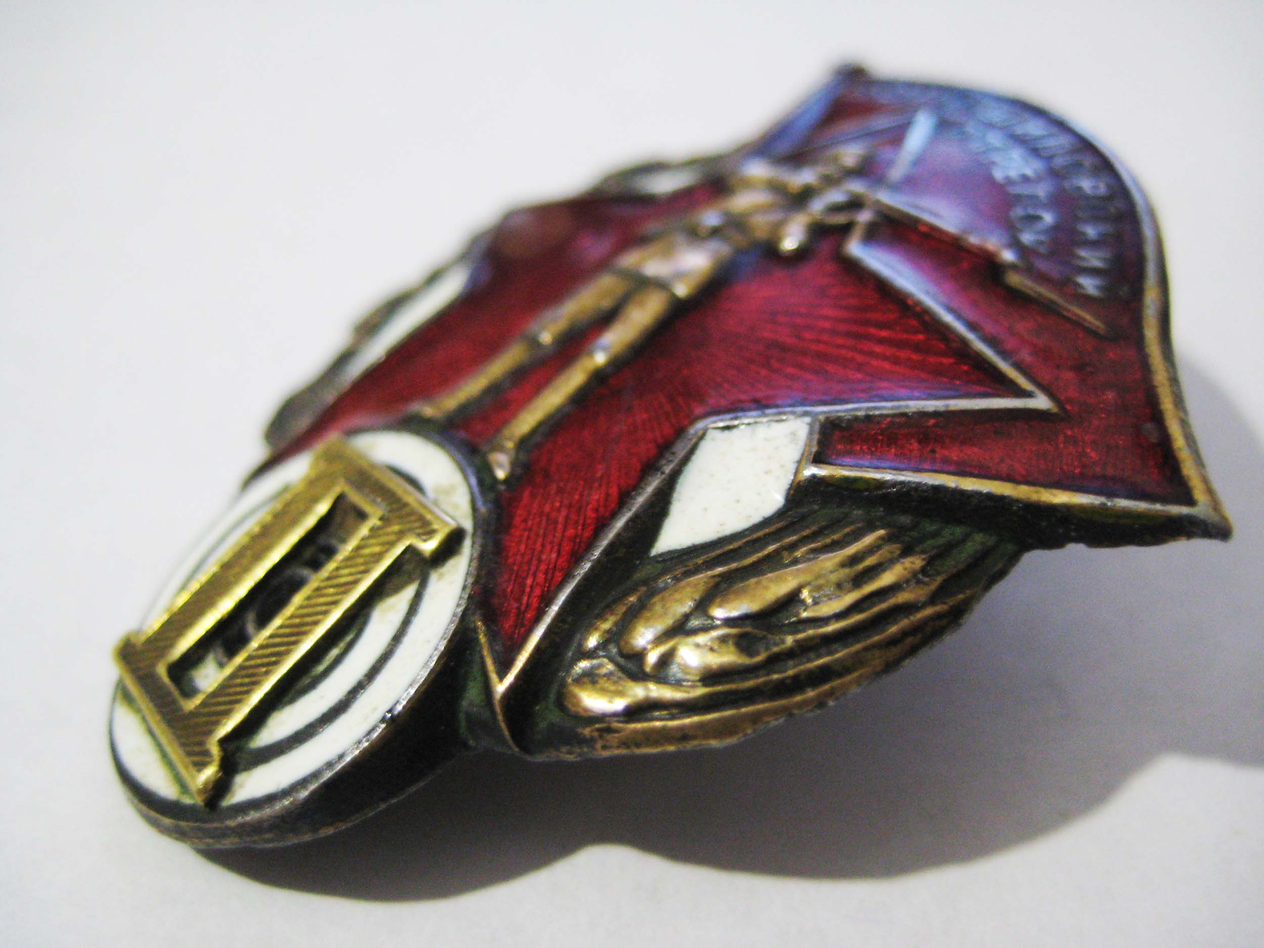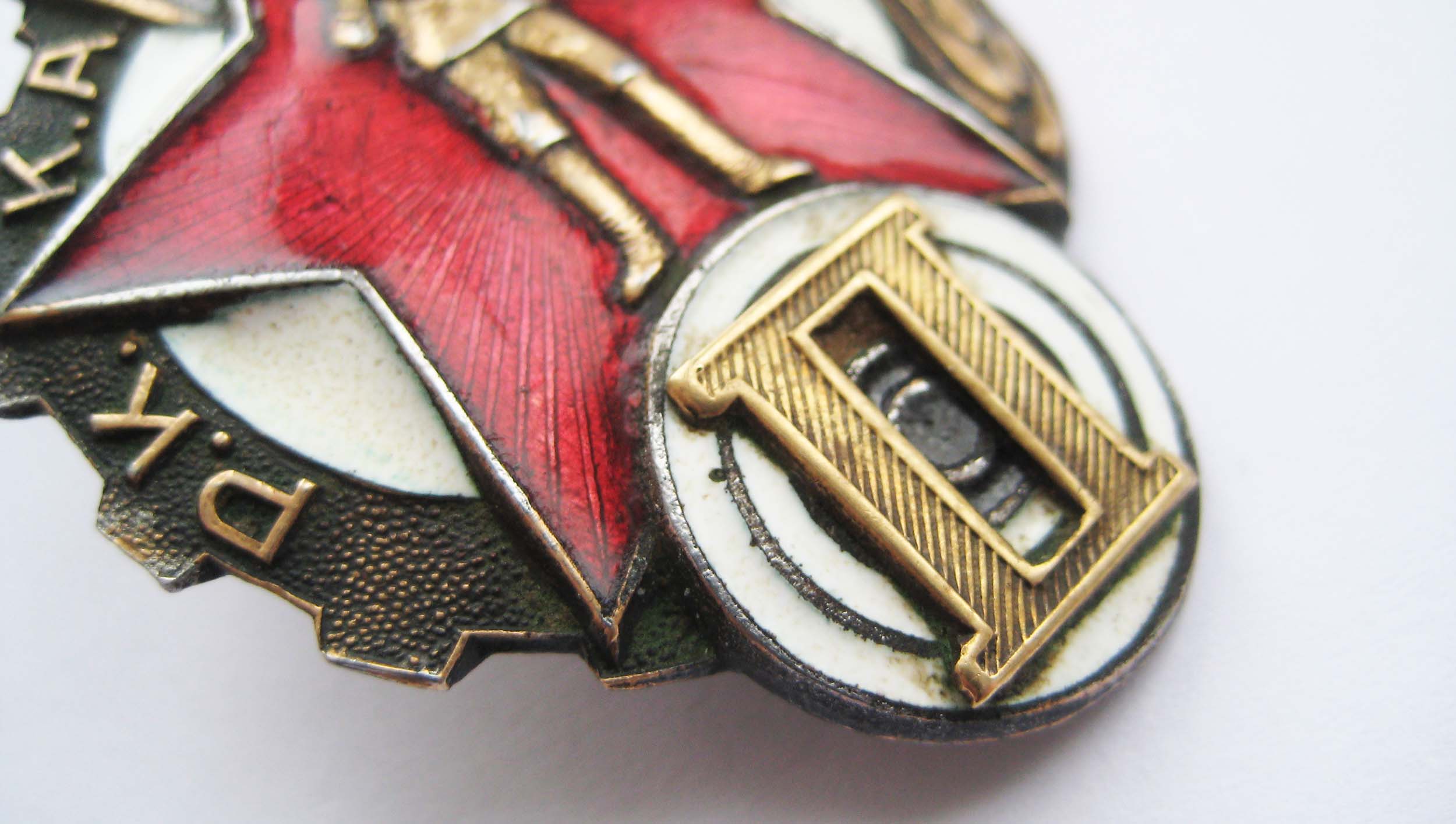 #5864481 По РФ. Закрутки нет. Сколов нет. Есть немного лёгкое потемнение эмали слева на знамени. Металл магнитный.